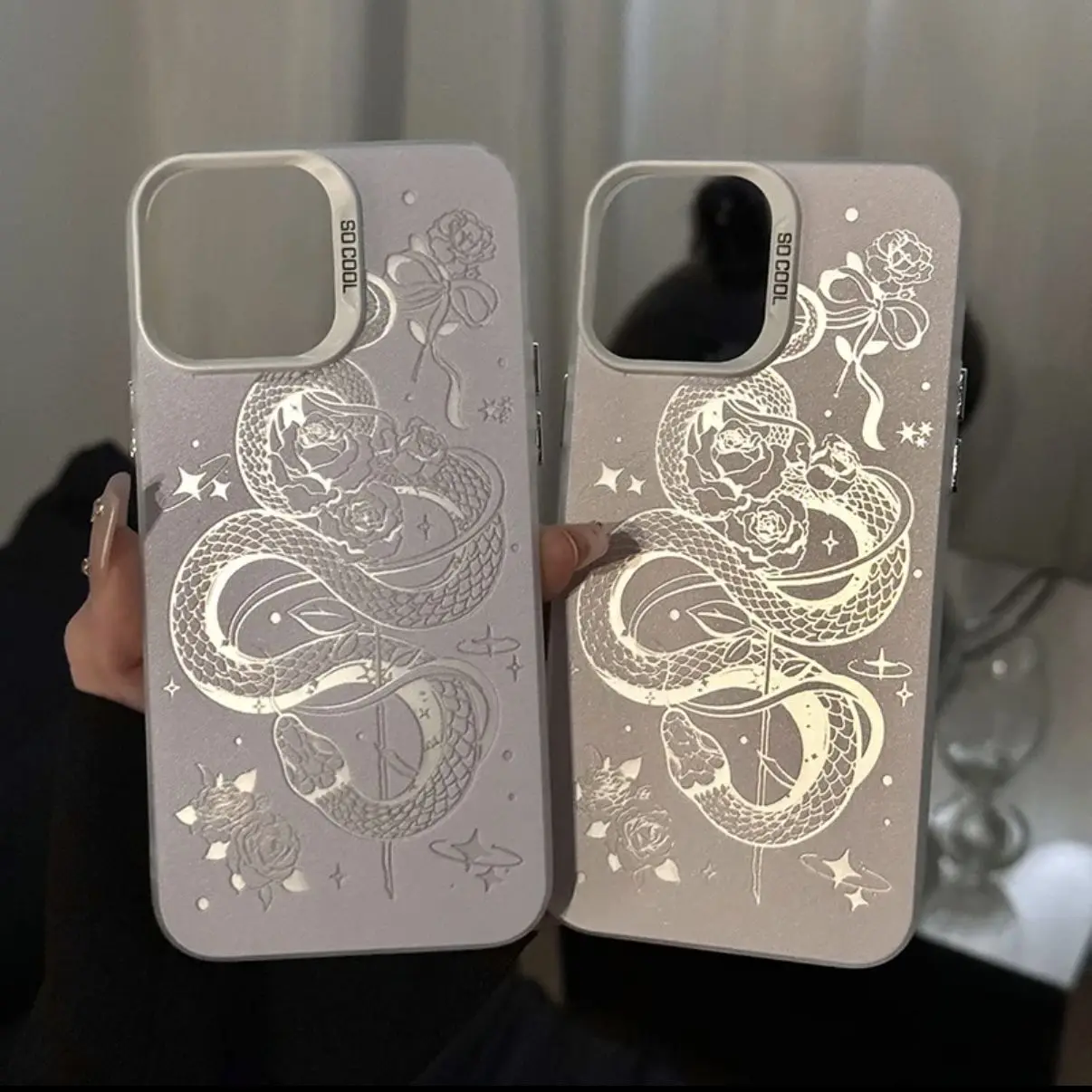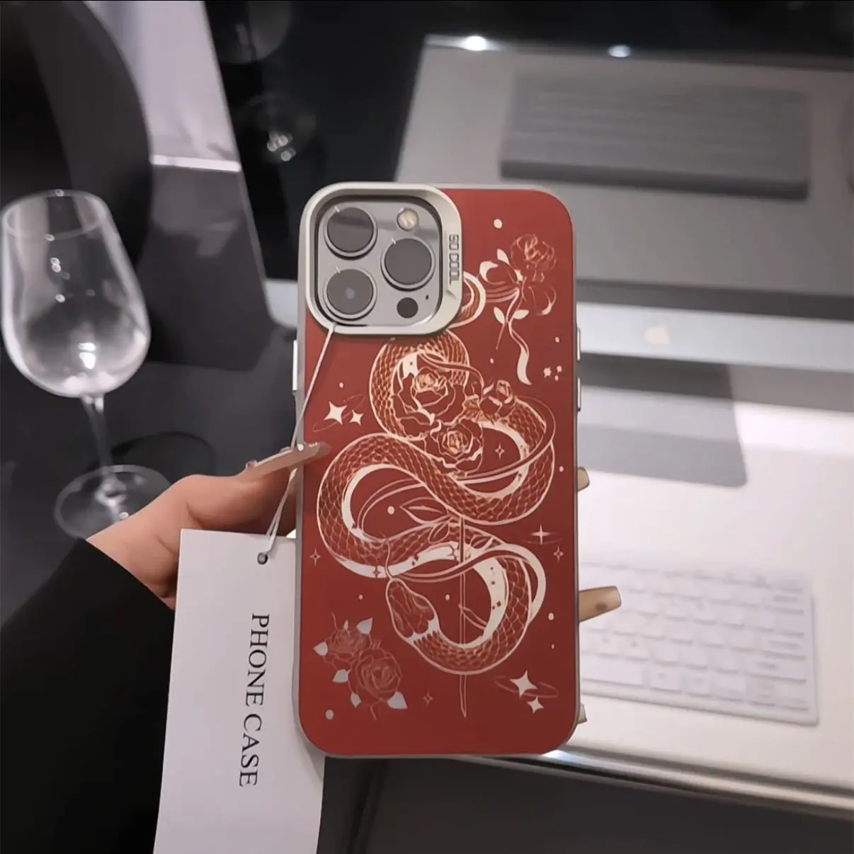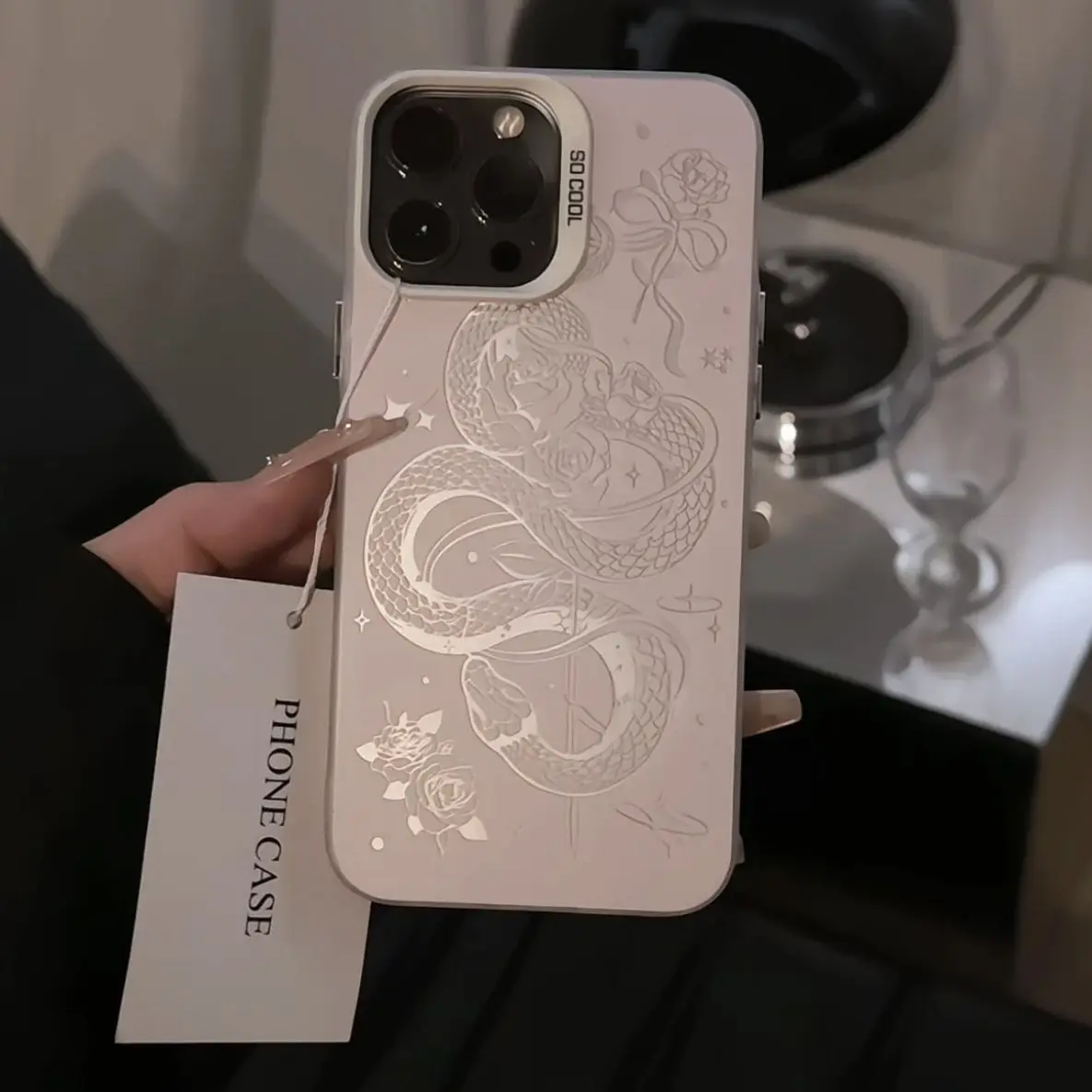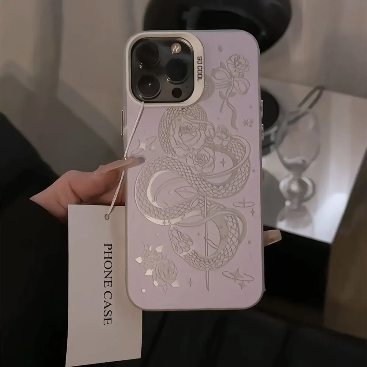 Comprar Funda de teléfono con serpiente rosa a la moda para iPhone 16 15 14 13 12 11 mini Pro Max X XR XSMAX 8 7 Plus, funda trasera mate anticaída