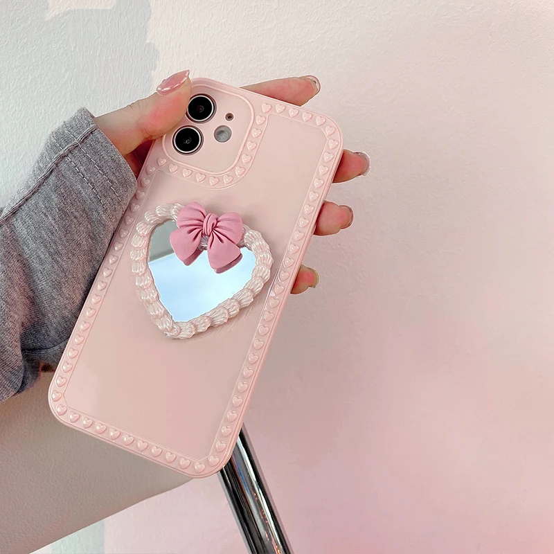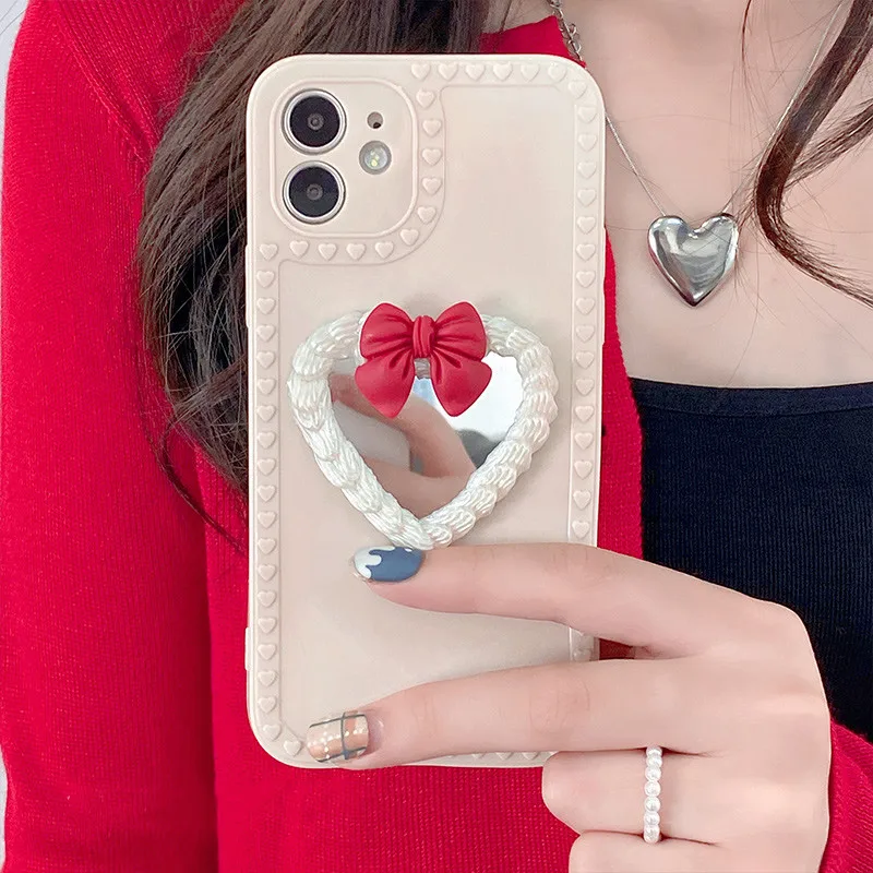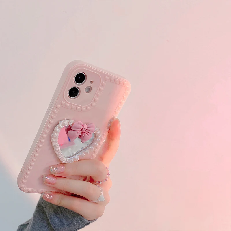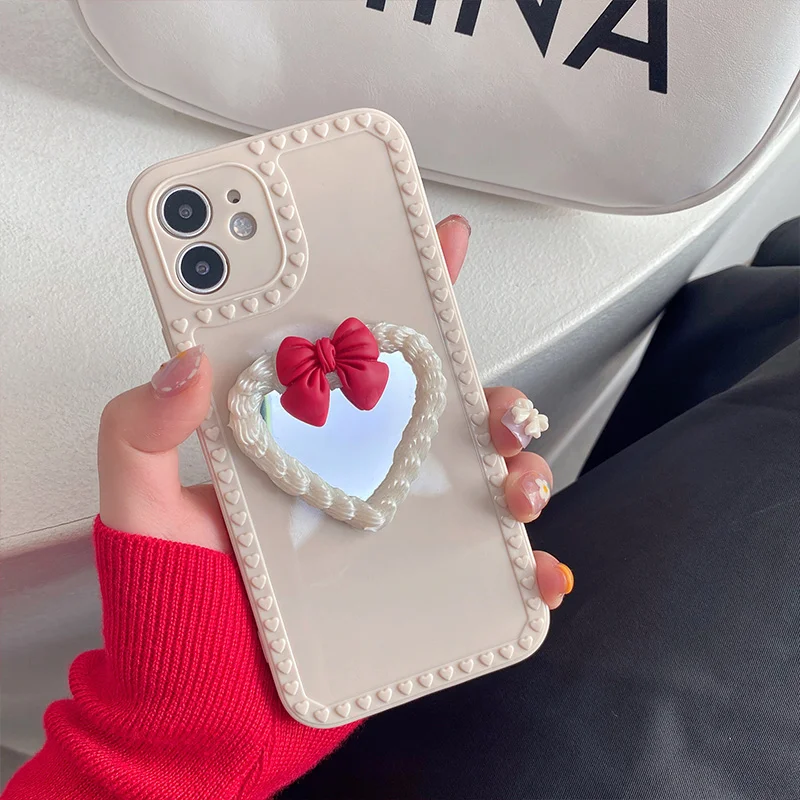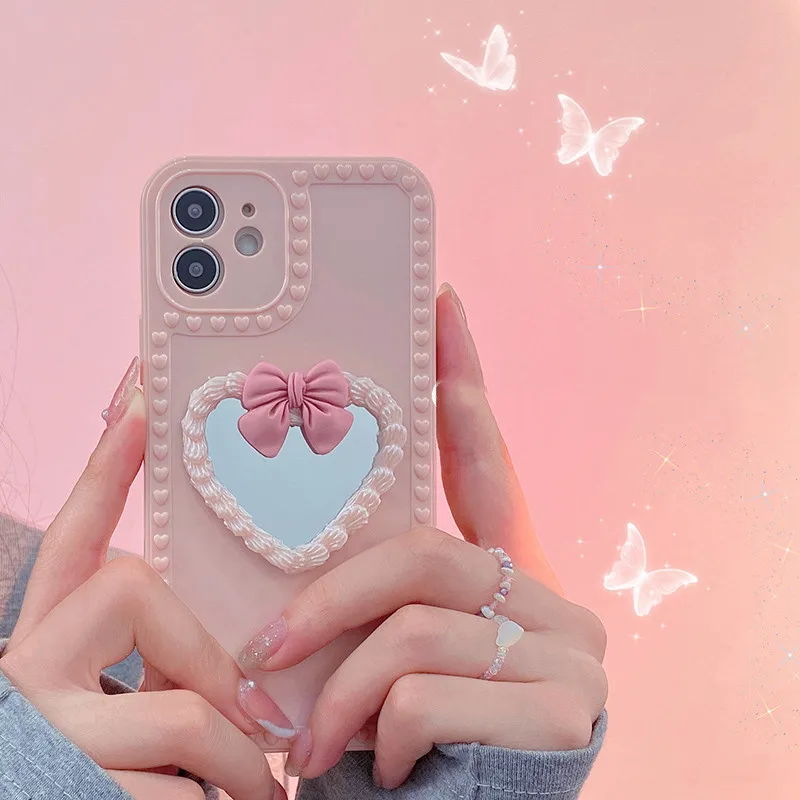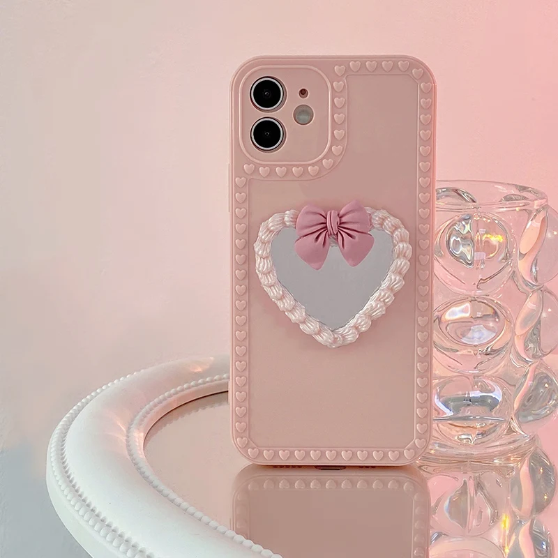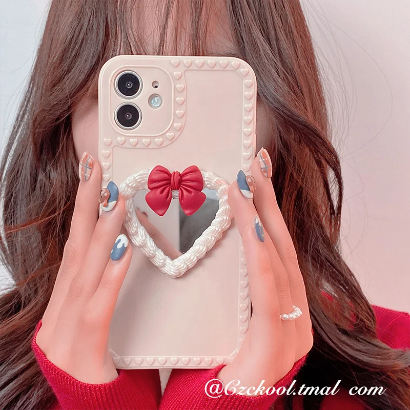 Funda de teléfono de silicona brillante con arco 3D, carcasa trasera bonita con espejo de corazón de amor para Iphone 12 Pro Max 11 XR X XS Max 7 8 Plus MiNi 6S, 2 uds.