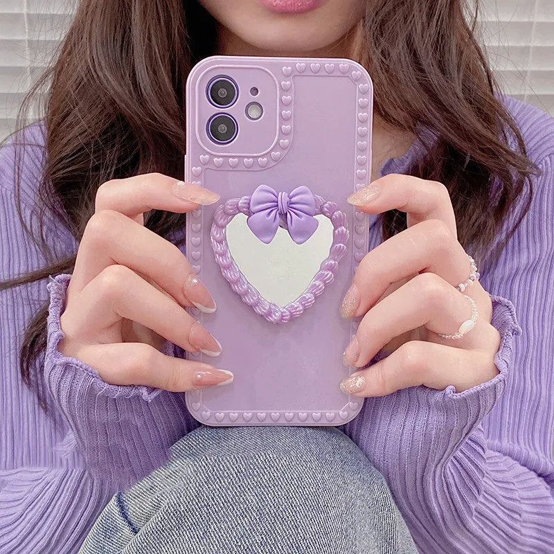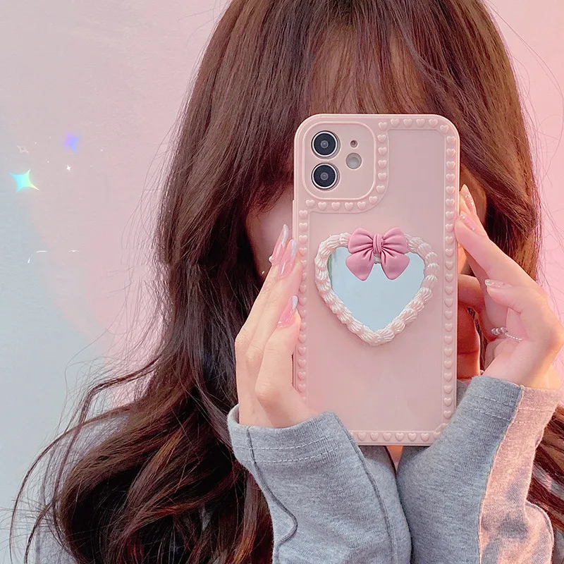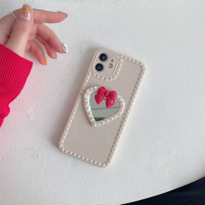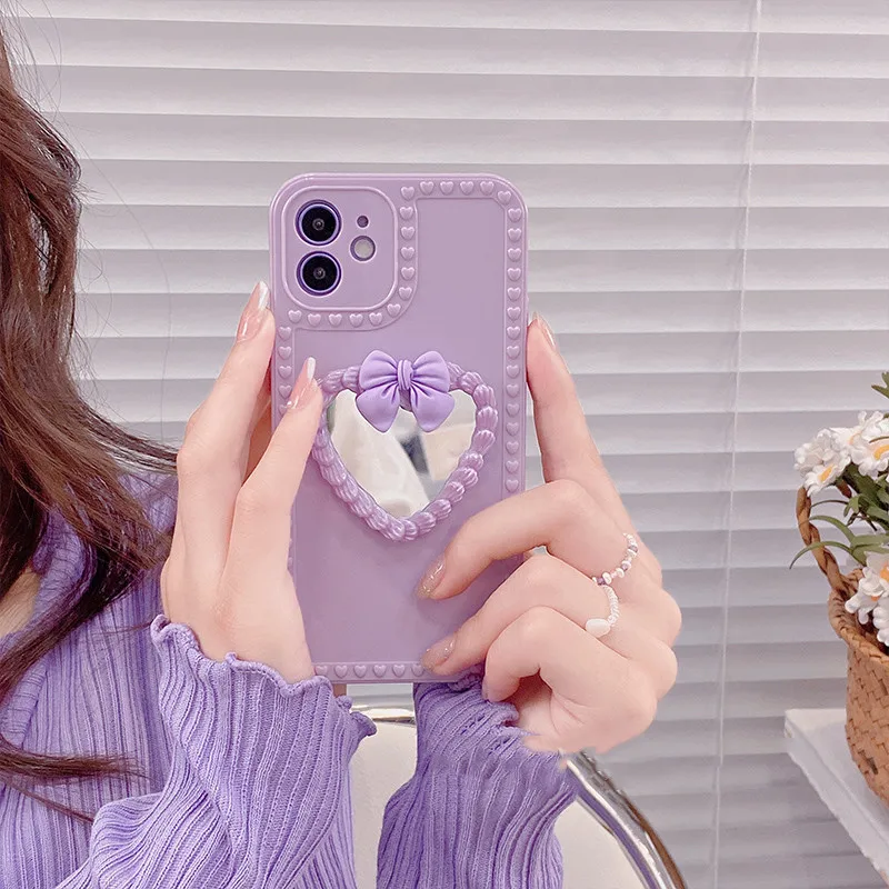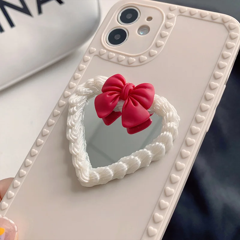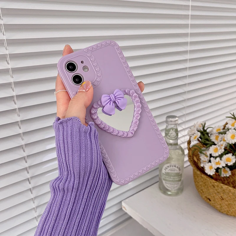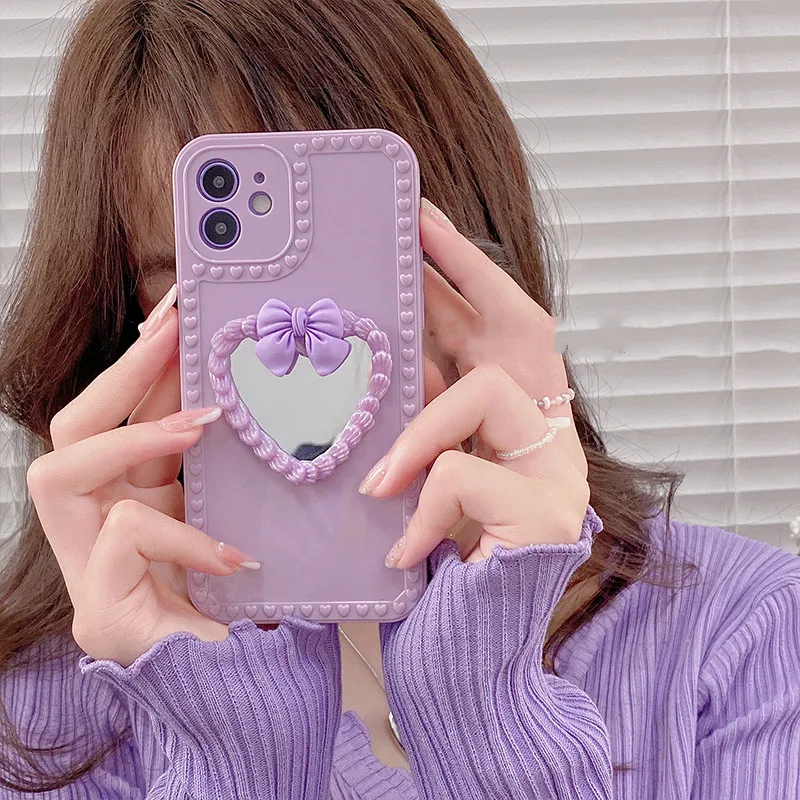 Funda de teléfono de silicona brillante con arco 3D, carcasa trasera bonita con espejo de corazón de amor para Iphone 12 Pro Max 11 XR X XS Max 7 8 Plus MiNi 6S, 2 uds.