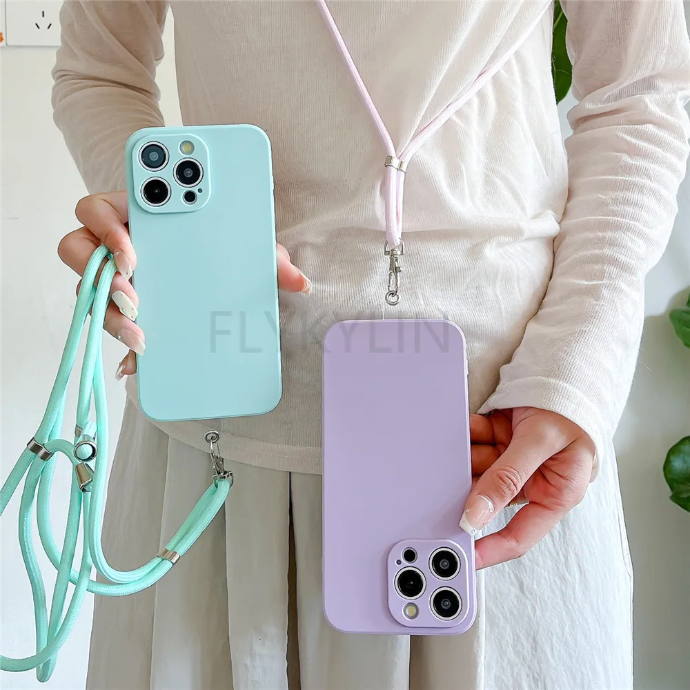 Crossbody Lanyard Silicone Phone Case For Xiaomi Redmi Note 12 12S 11 11S 10 10S 9 9S 8 8T Pro Plus 4G 5G Soft Shockproof Cover