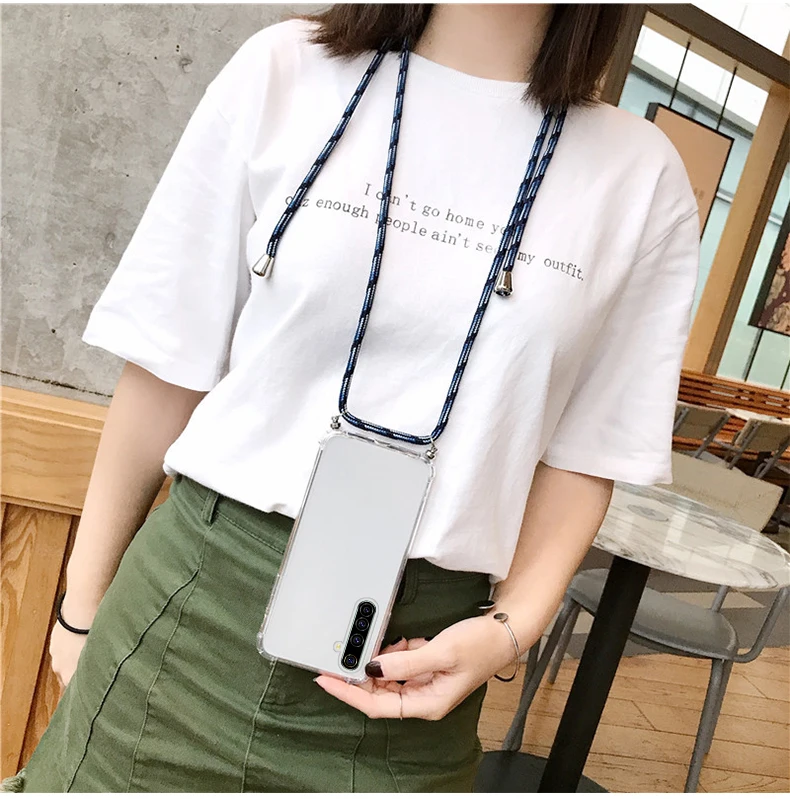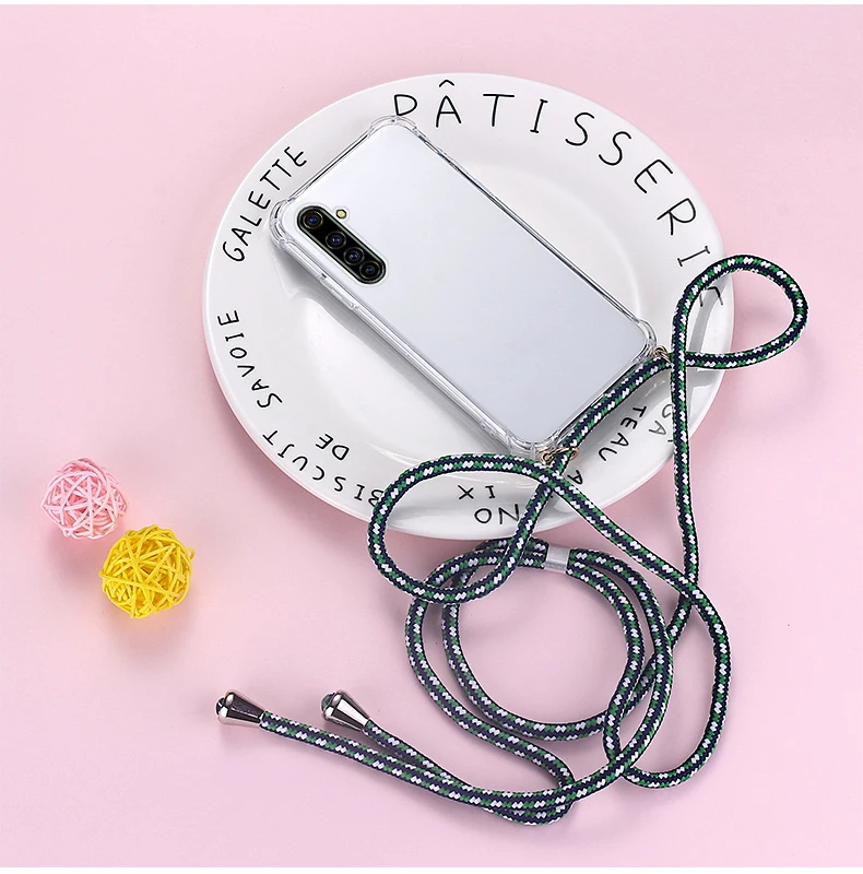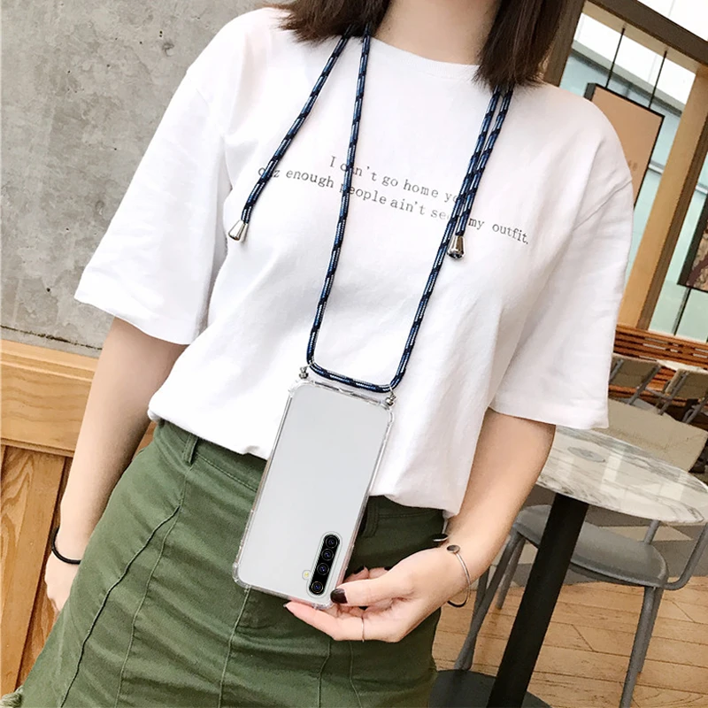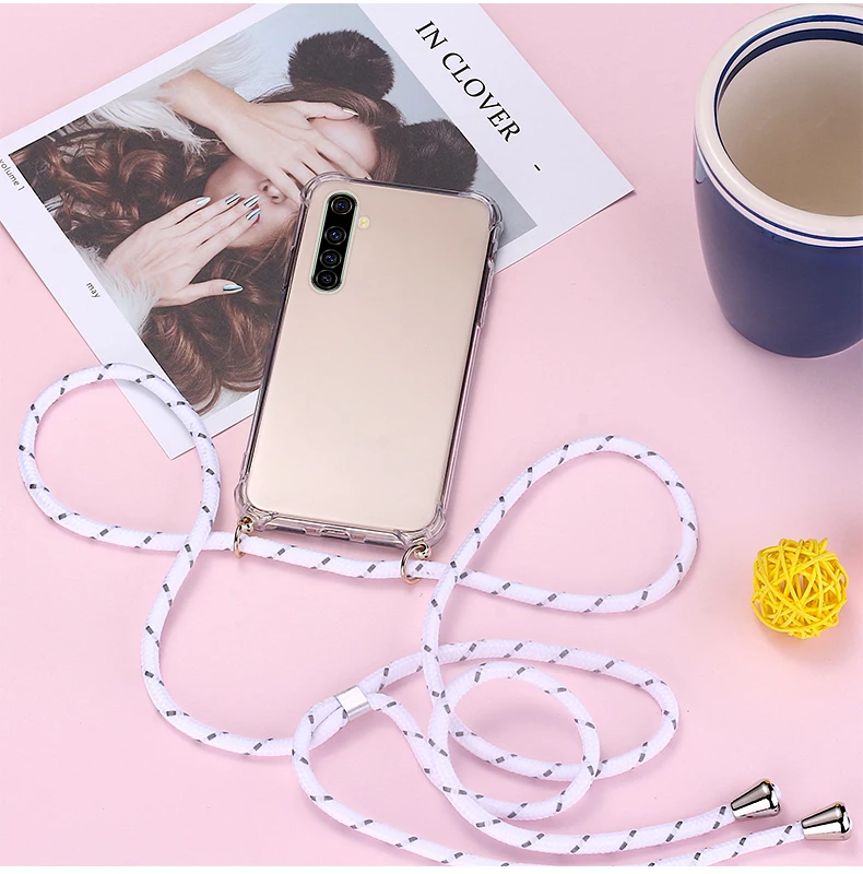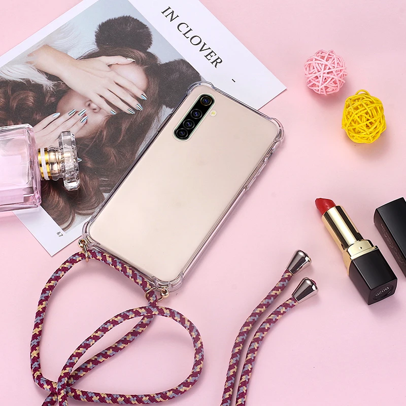 Comprar Funda de teléfono de silicona con cordón de lujo para Realme 8, 7, 6, 5, 5i, 3, 2, X50, XT, X2, X Lite Pro, C3, C2, collar ultrafino, funda de cuerda