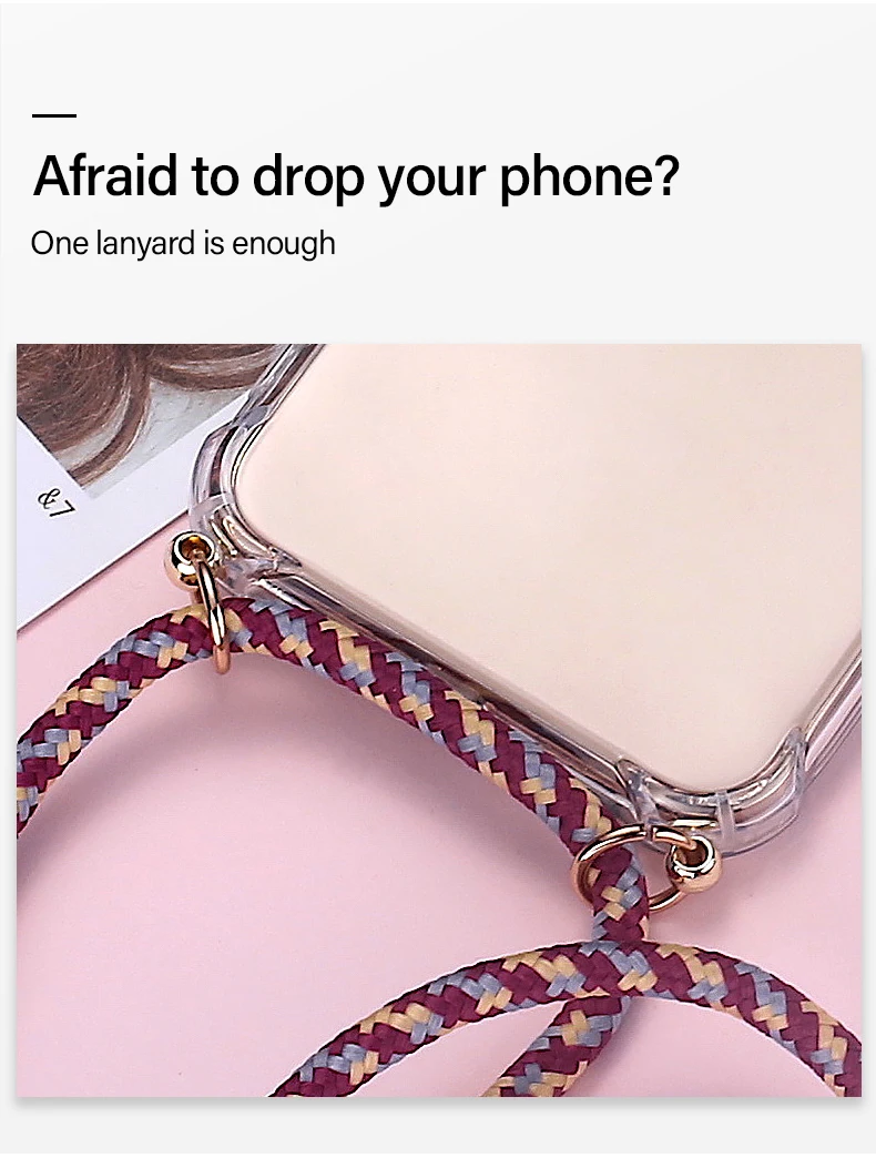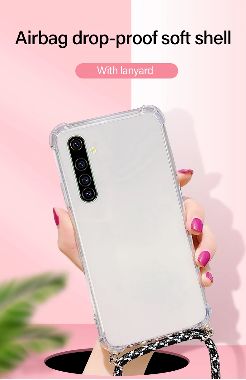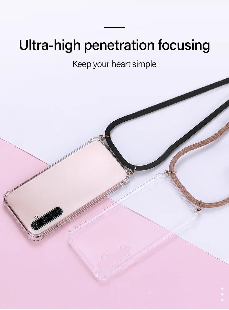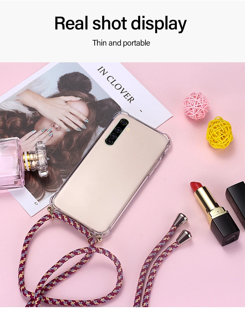 Comprar Funda de teléfono de silicona con cordón de lujo para Realme 8, 7, 6, 5, 5i, 3, 2, X50, XT, X2, X Lite Pro, C3, C2, collar ultrafino, funda de cuerda