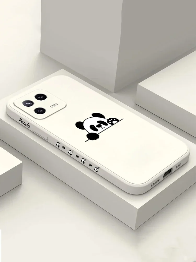 Funda de teléfono de silicona cuadrada con etiqueta de Panda para Xiaomi Mi 13, 12, 11 Lite, 5G, 14, 13T, 12T, 12X, Poco M6, X6, X5, X3, F5 Pro, C65