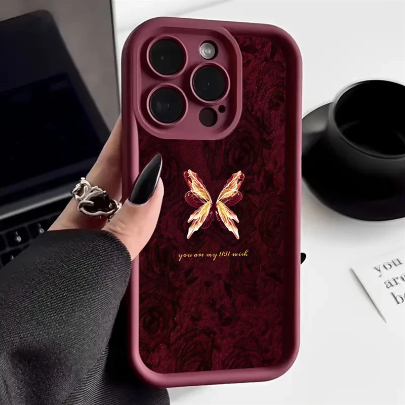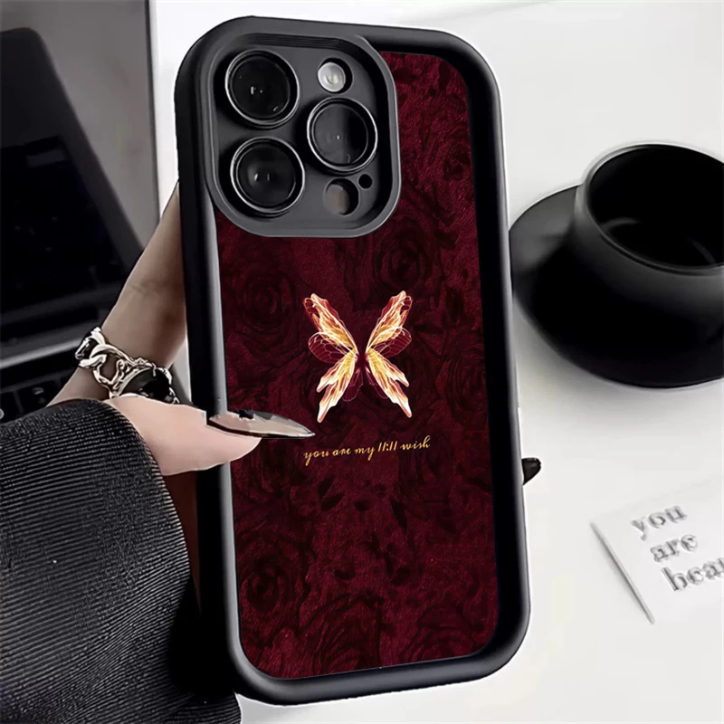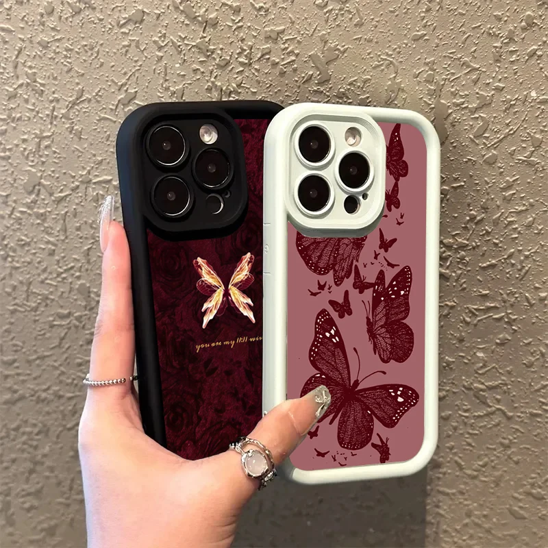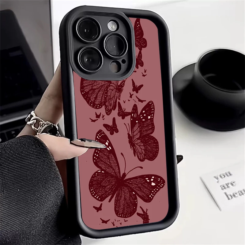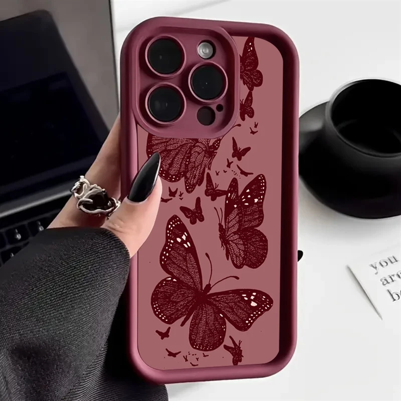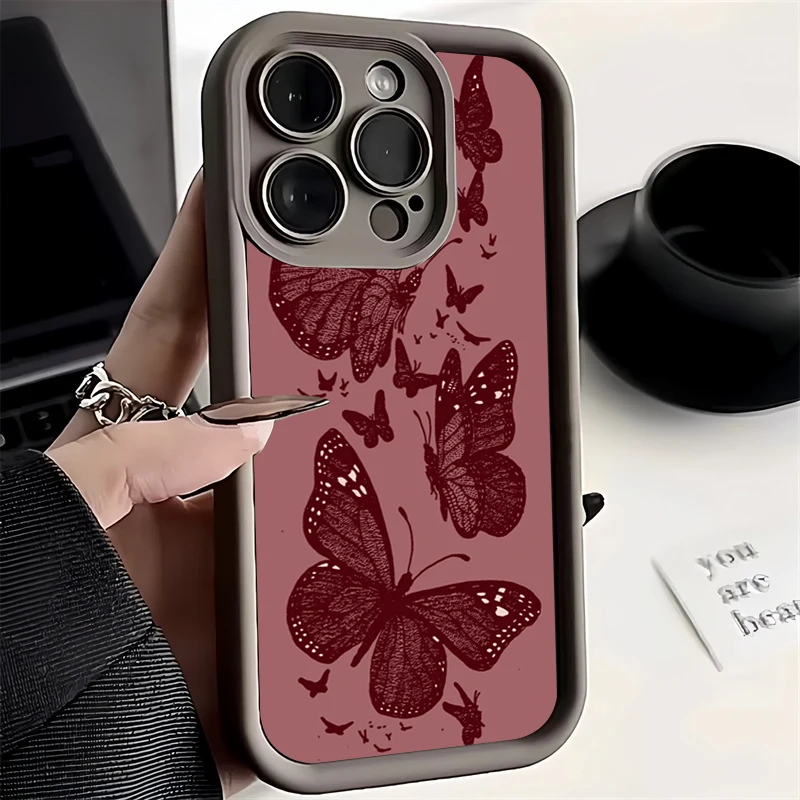 Funda de silicona con patrón de mariposa Retro para iPhone 17 16 15 14 13 12 11 Pro Max 17 Air 16E XS X XR 7 8 Plus, funda a prueba de golpes