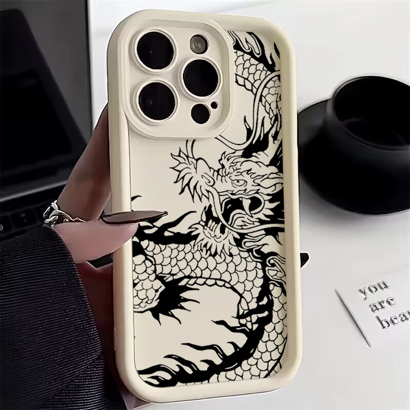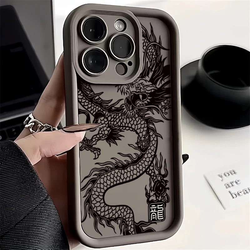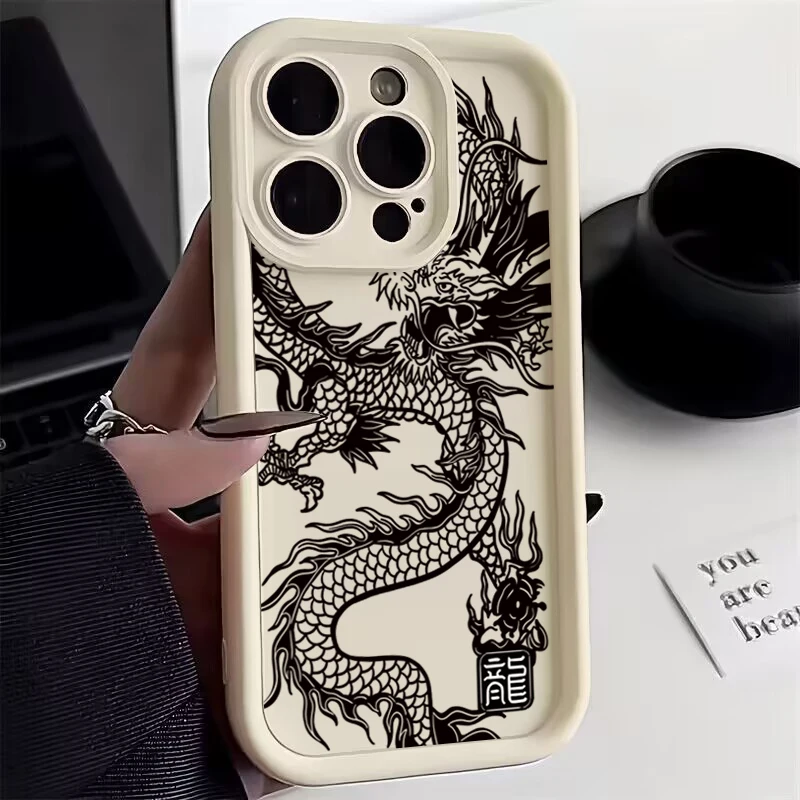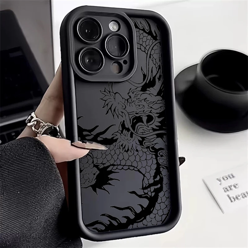 Funda de teléfono de silicona con dragón negro chino para Samsung Galaxy A26 A33 A25 A16 A56 A06 A24 S25 S24 S23 S22 S21 Ultra Plus funda FE