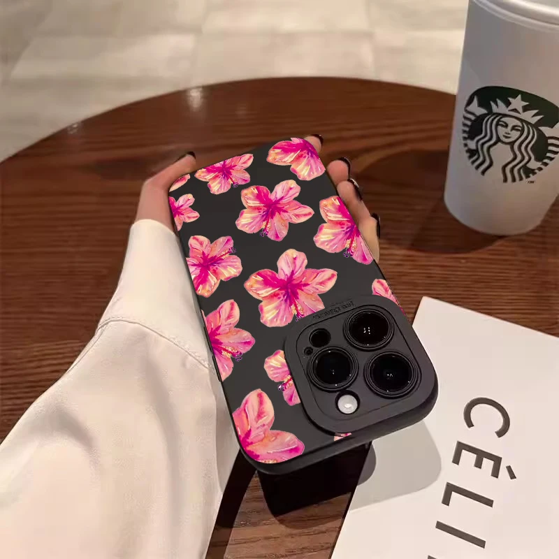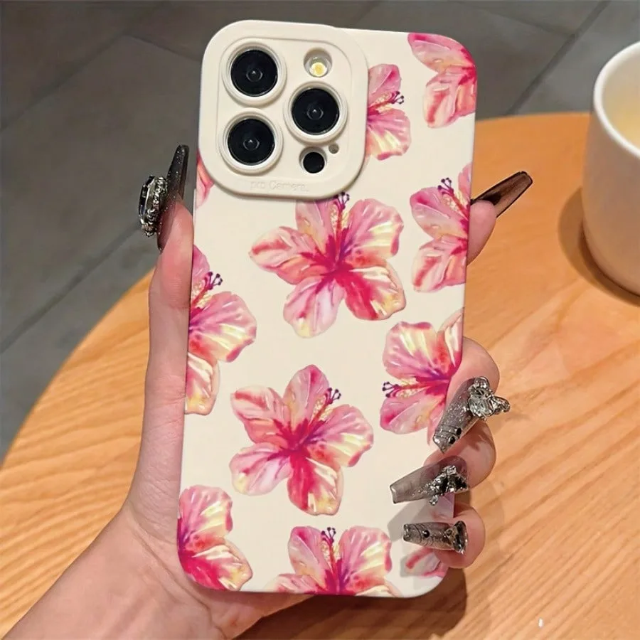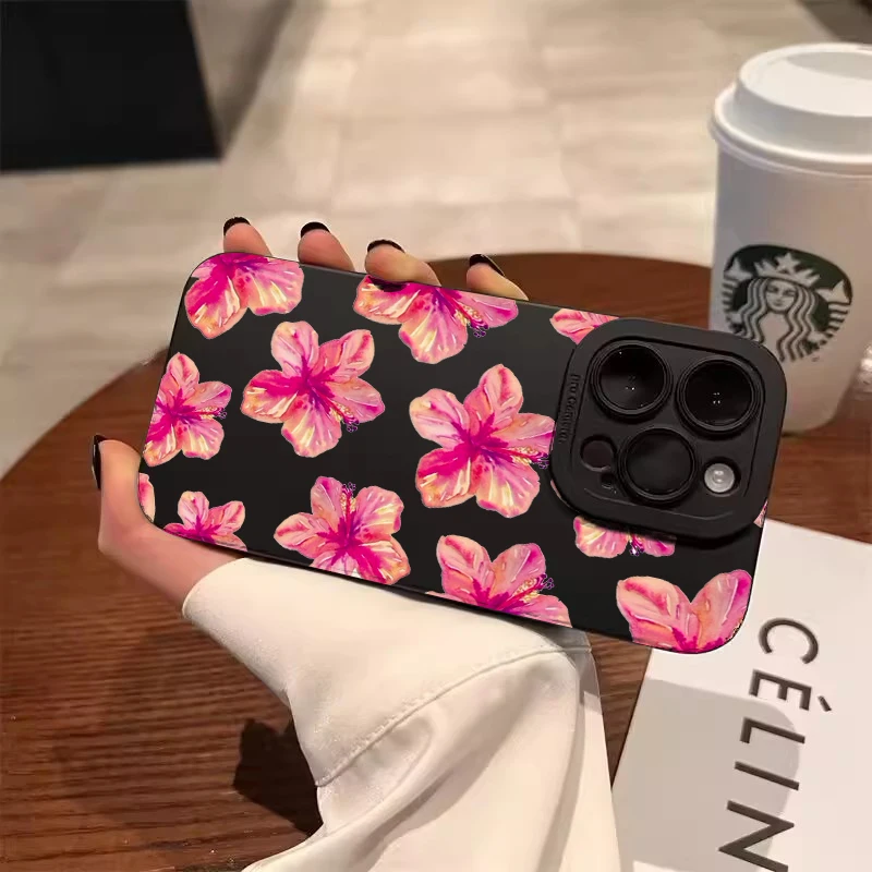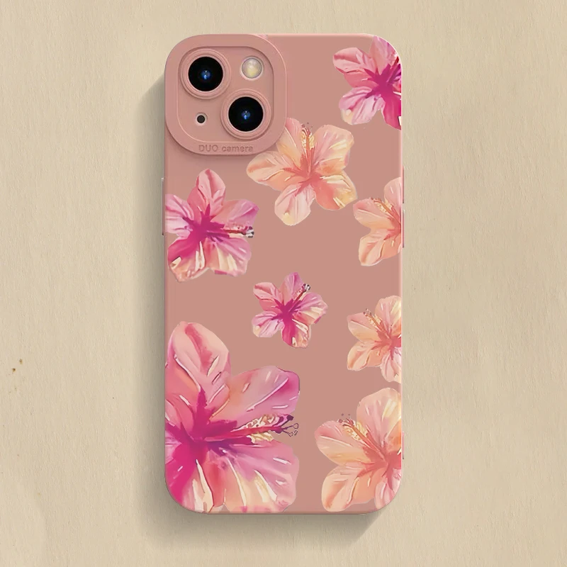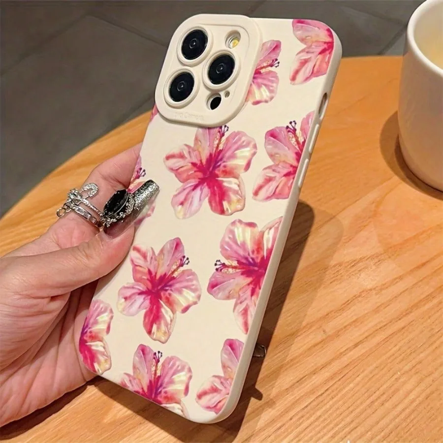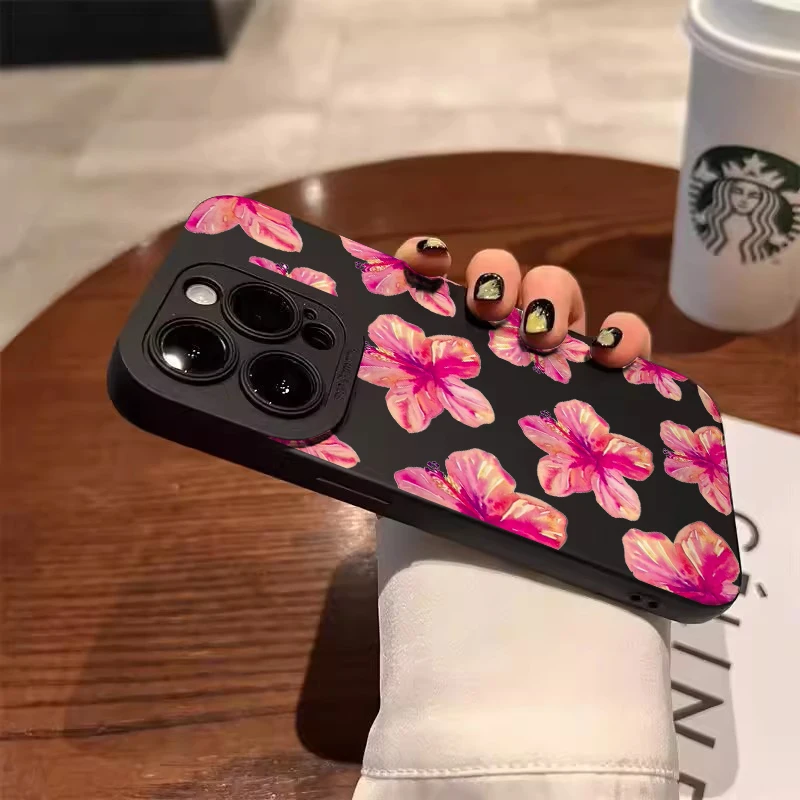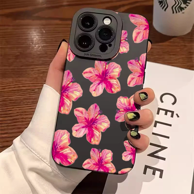 Comprar Funda de teléfono de silicona con flor de hibisco rosa elegante para iPhone 16 Pro Max 15 14 13 12 11 XS X XR 7 8 Plus 16e funda suave a prueba de golpes