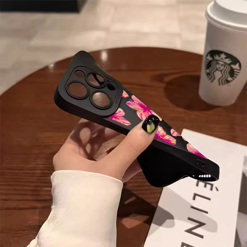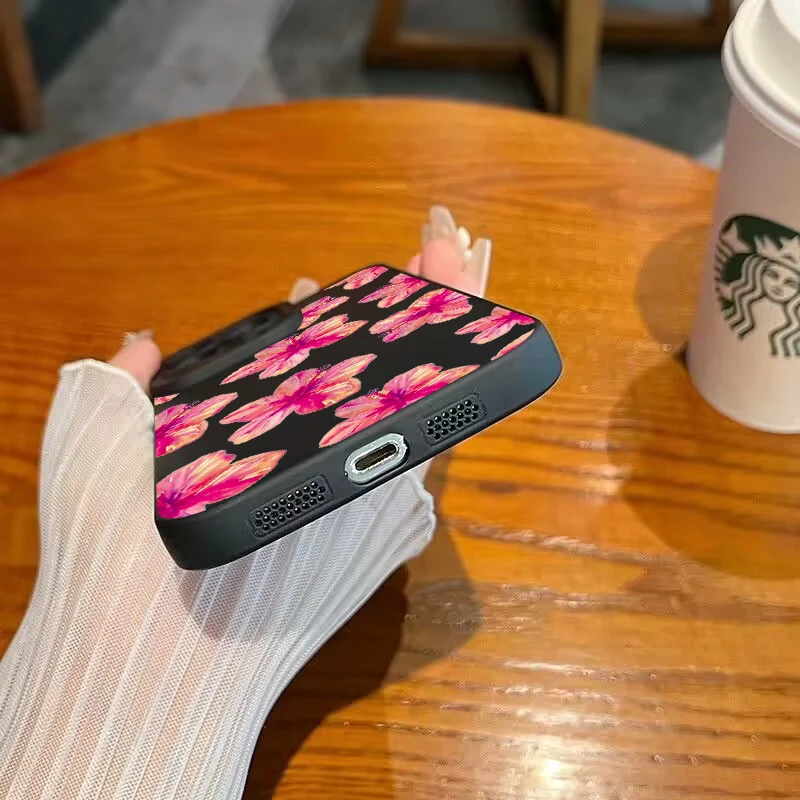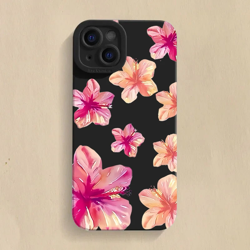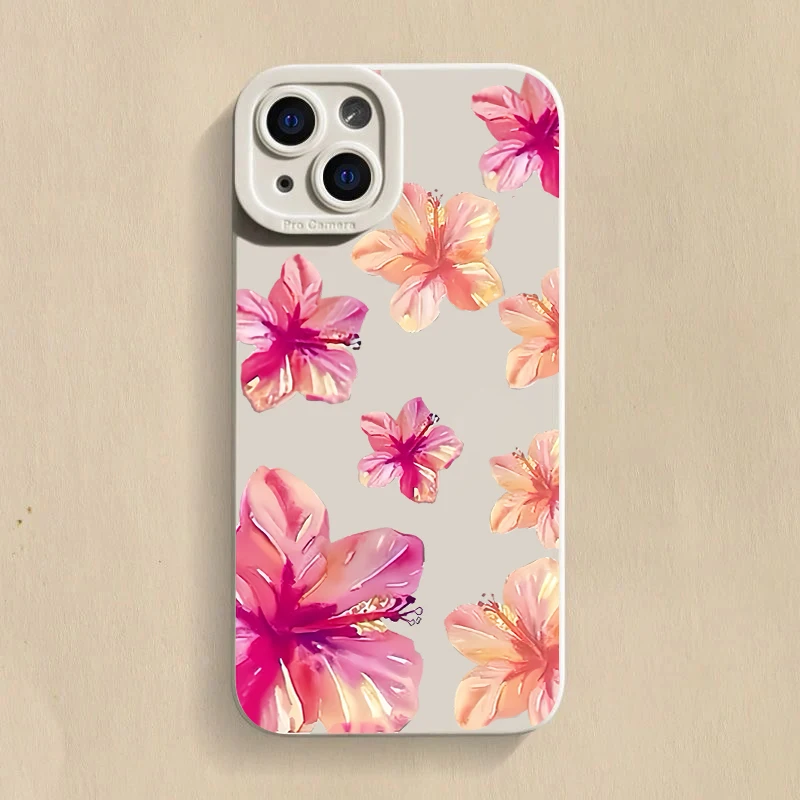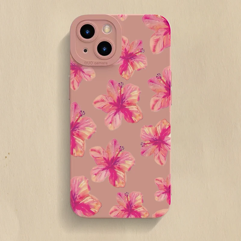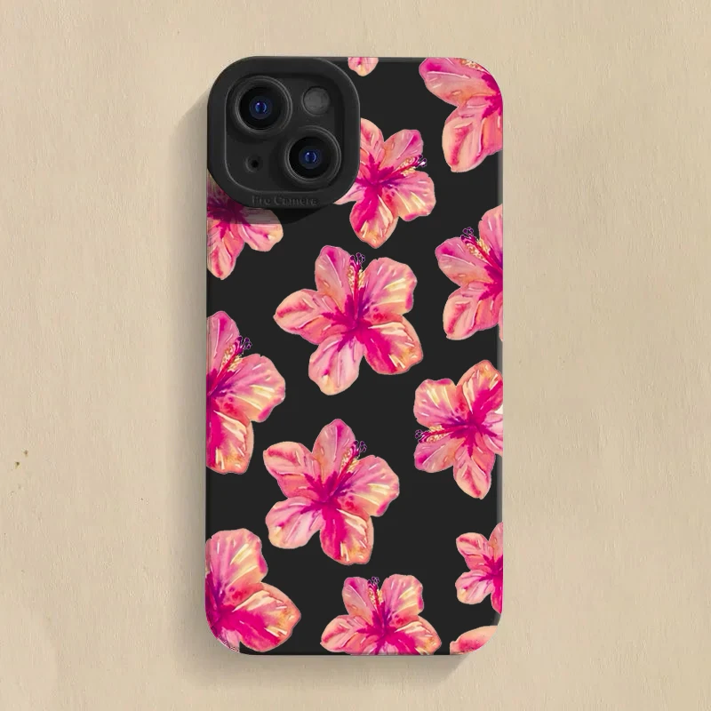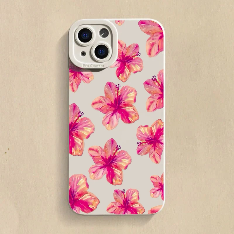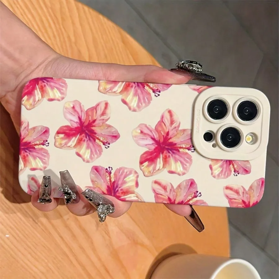 Comprar Funda de teléfono de silicona con flor de hibisco rosa elegante para iPhone 16 Pro Max 15 14 13 12 11 XS X XR 7 8 Plus 16e funda suave a prueba de golpes
