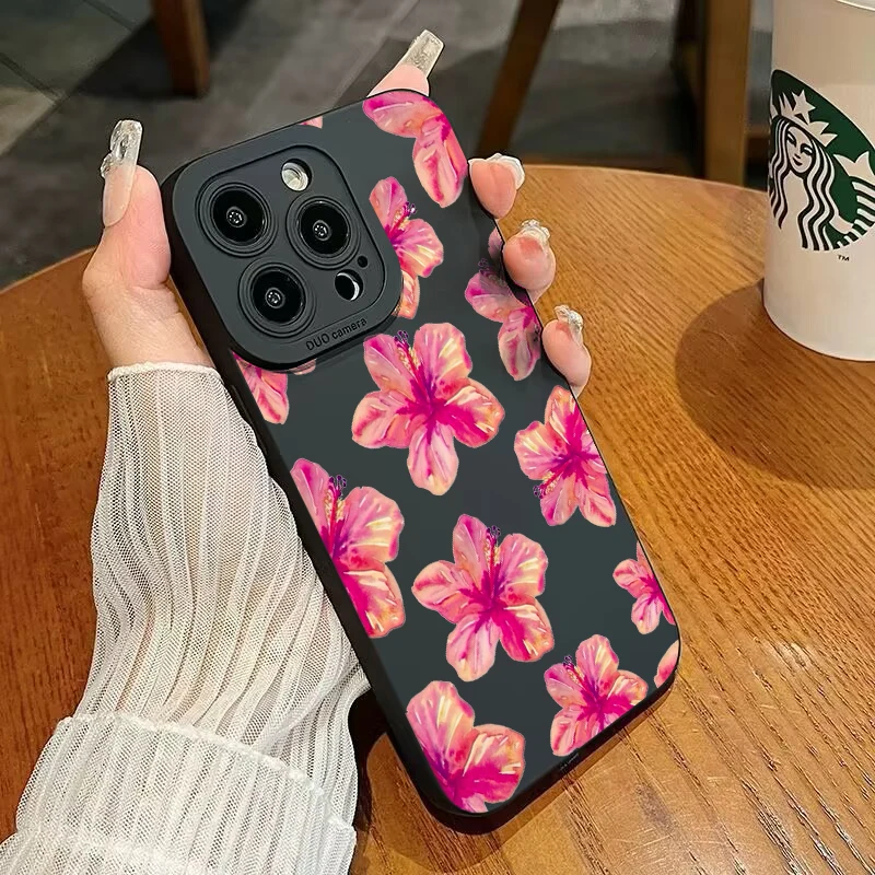 Funda de teléfono de silicona con flor de hibisco rosa elegante para iPhone 16 Pro Max 15 14 13 12 11 XS X XR 7 8 Plus 16e funda suave a prueba de golpes