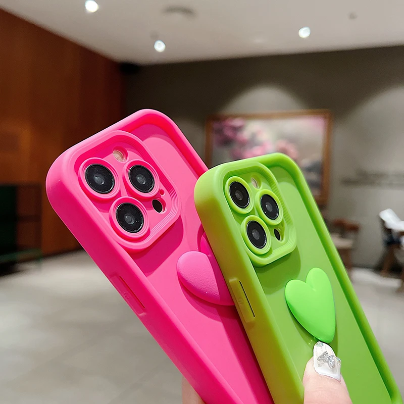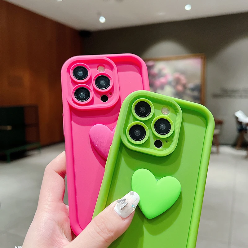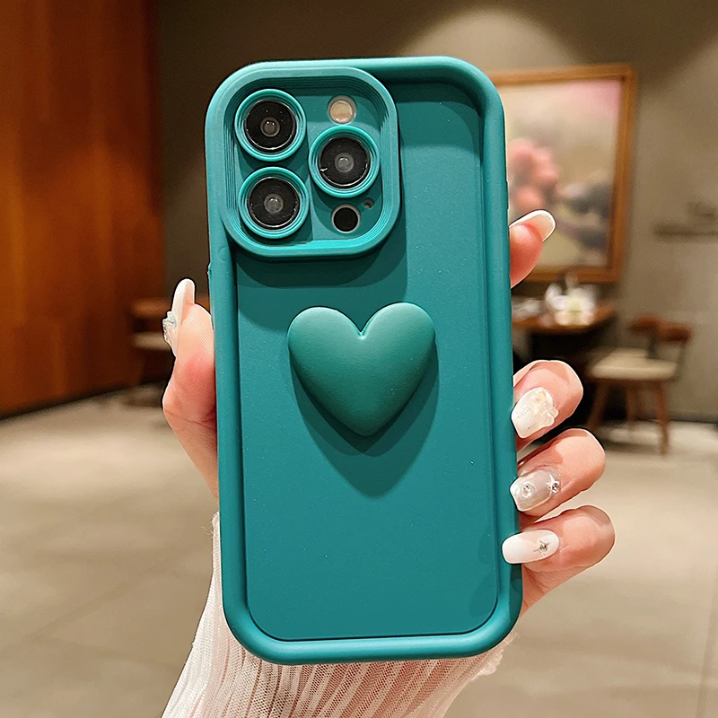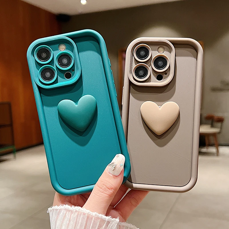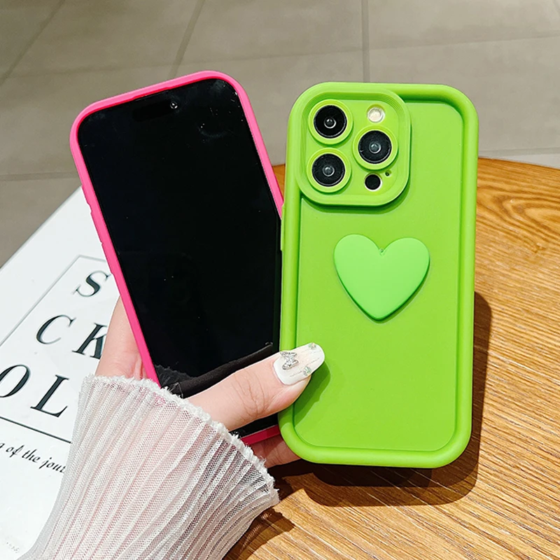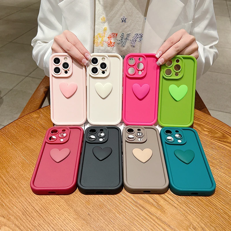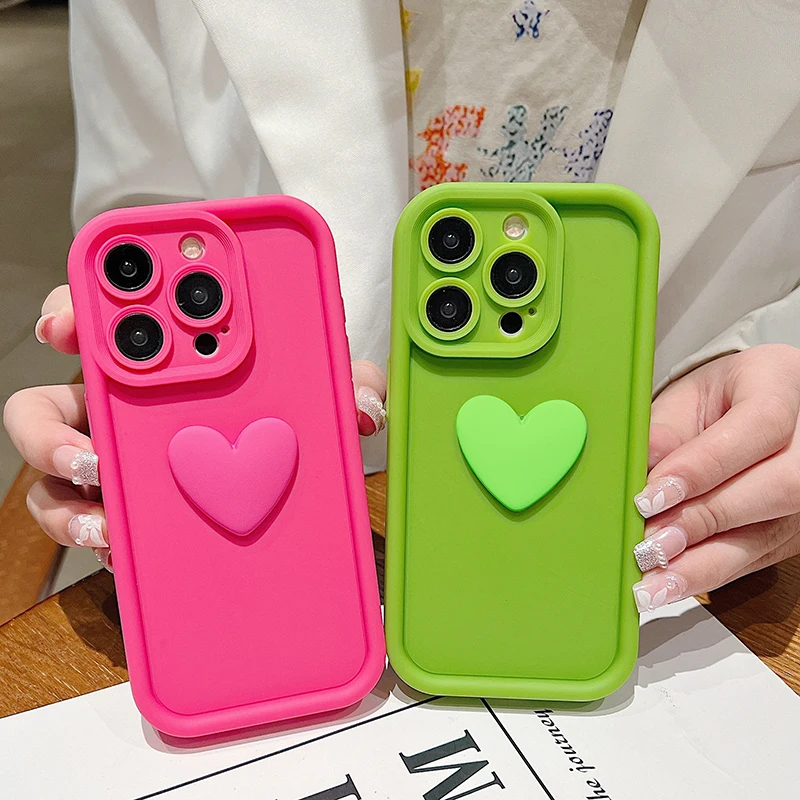 Funda de teléfono de silicona con forma de corazón de amor INS 3D para iPhone 11, 12, 13, 14, 15 16 Pro Max XS XR 7 8 Plus SE 2022, cubierta de caramelo a prueba de golpes