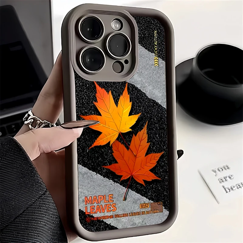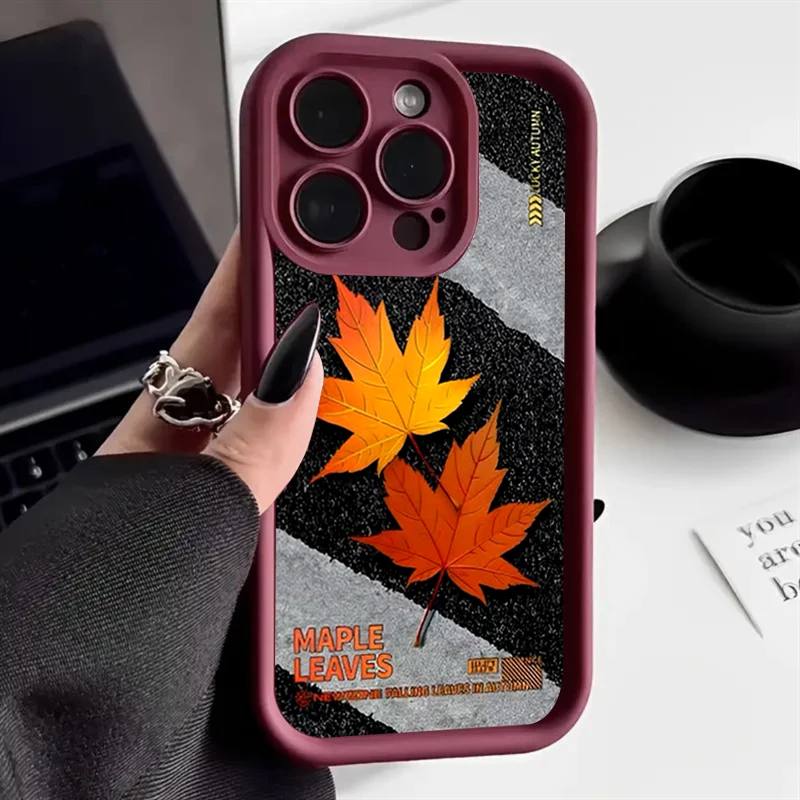 Funda de teléfono de silicona con hoja de arce de la suerte de otoño para iPhone 17 16 15 Pro Max 14 13 12 11 Pro 17 Air 16E XS X XR 7 8 Plus funda suave