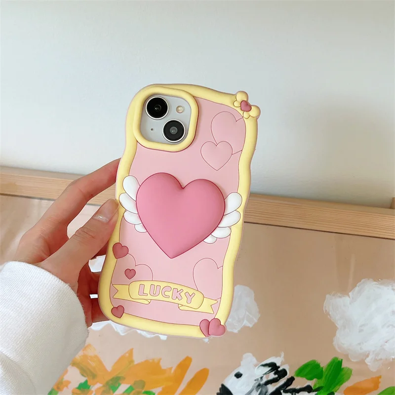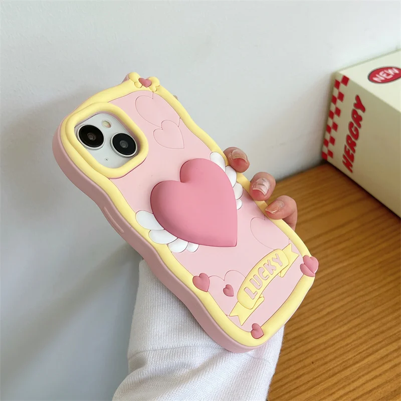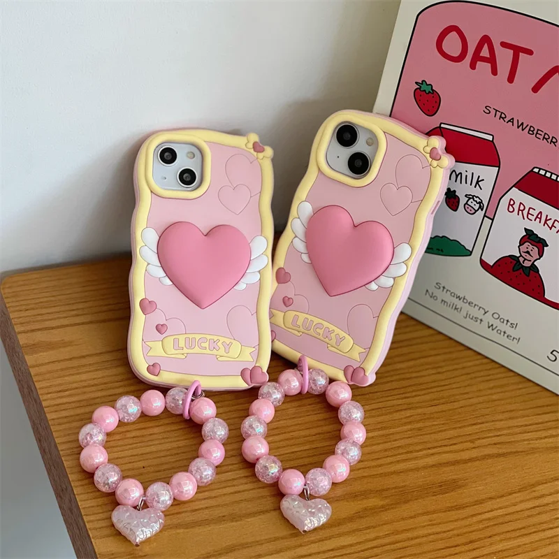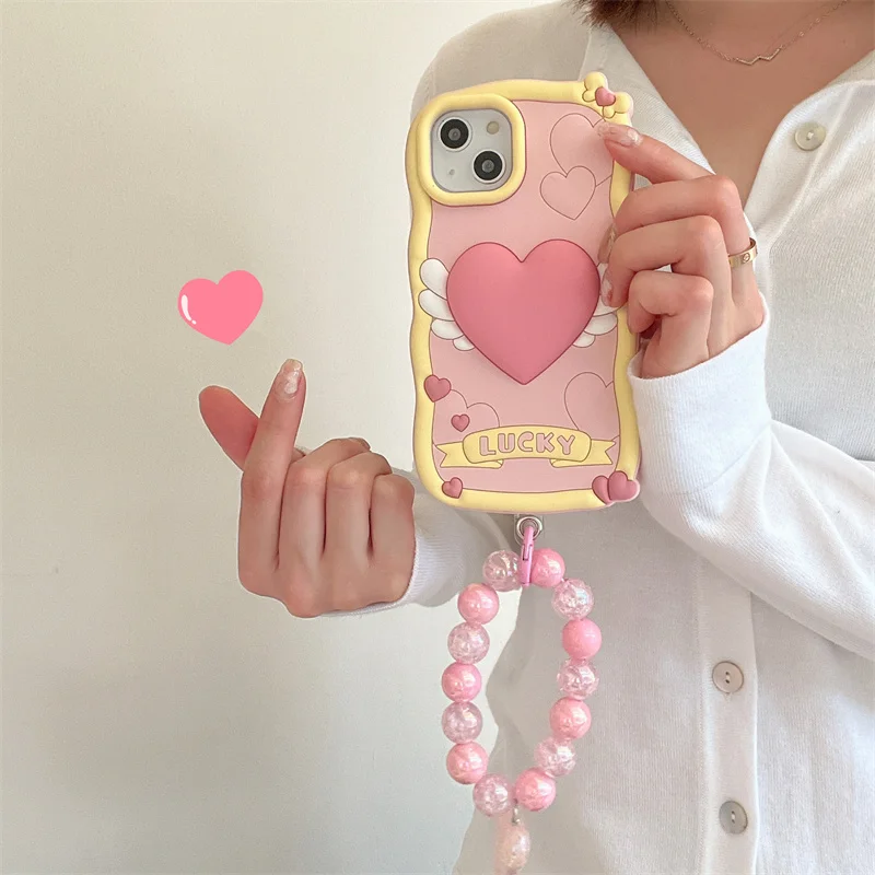 Funda de teléfono de silicona para Iphone, carcasa protectora suave a prueba de golpes, Ala de corazón de amor 3D, pulseras, para Iphone 11, 12, 13, 14pro Max, 1 unidad