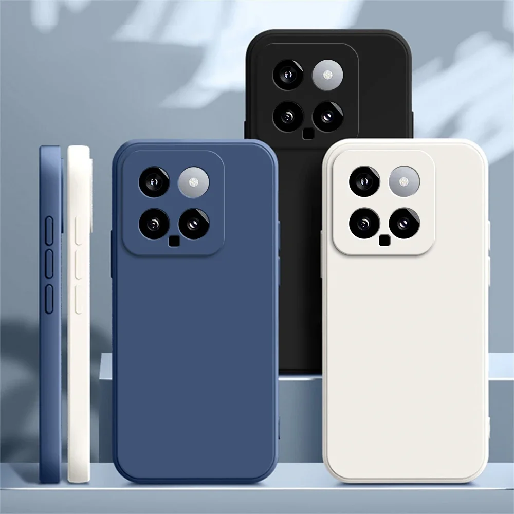 Comprar Funda de teléfono de silicona líquida oficial para Xiaomi 14 Pro Mi14 14Pro 5G, protección de cámara de Color sólido cuadrado suave, cubierta trasera para parejas