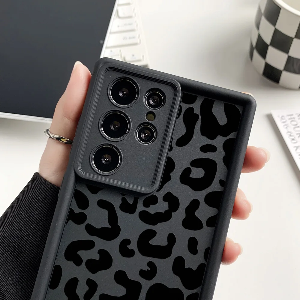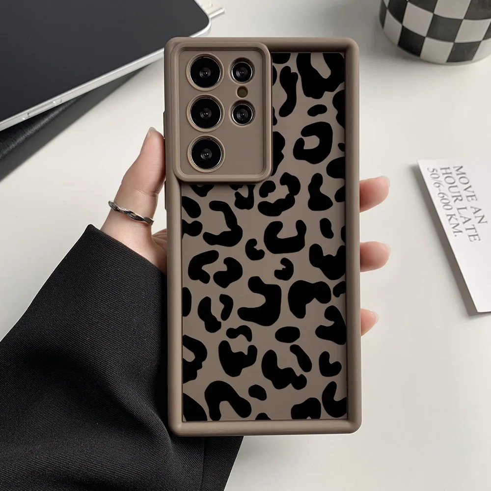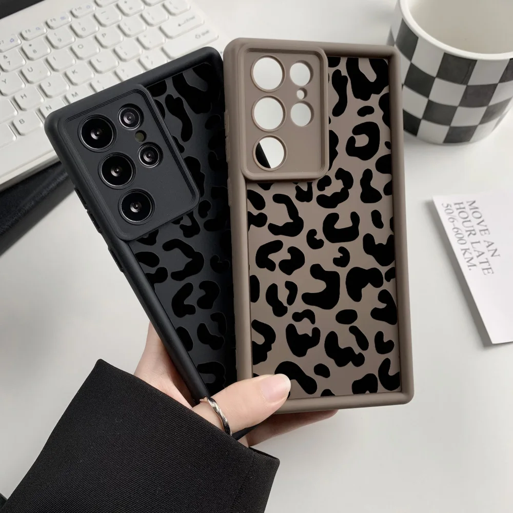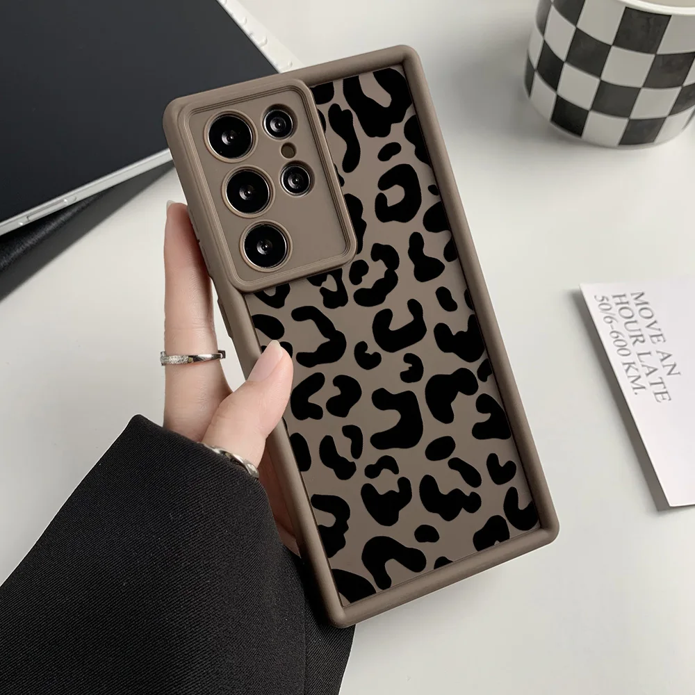 Funda de teléfono de silicona líquida para Samsung S25 Ultra Funda Galaxy S24 Plus S23 FE S22 S21 S20 FE Funda de leopardo a prueba de golpes Coque