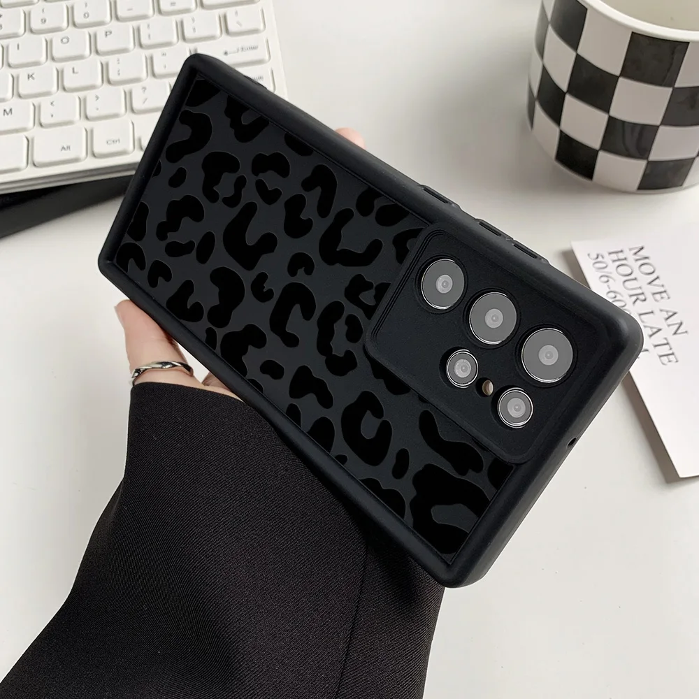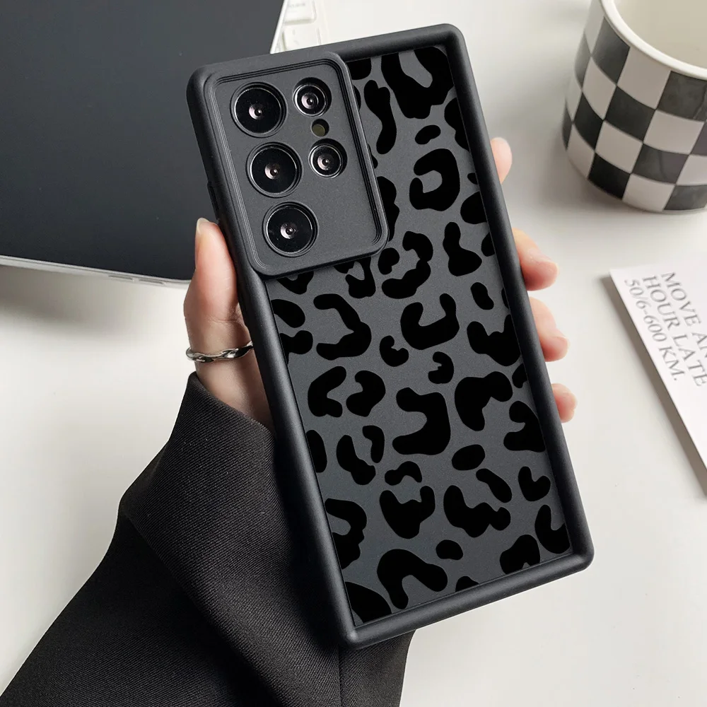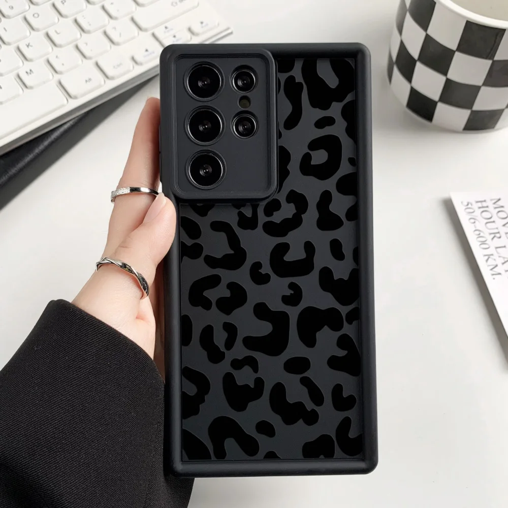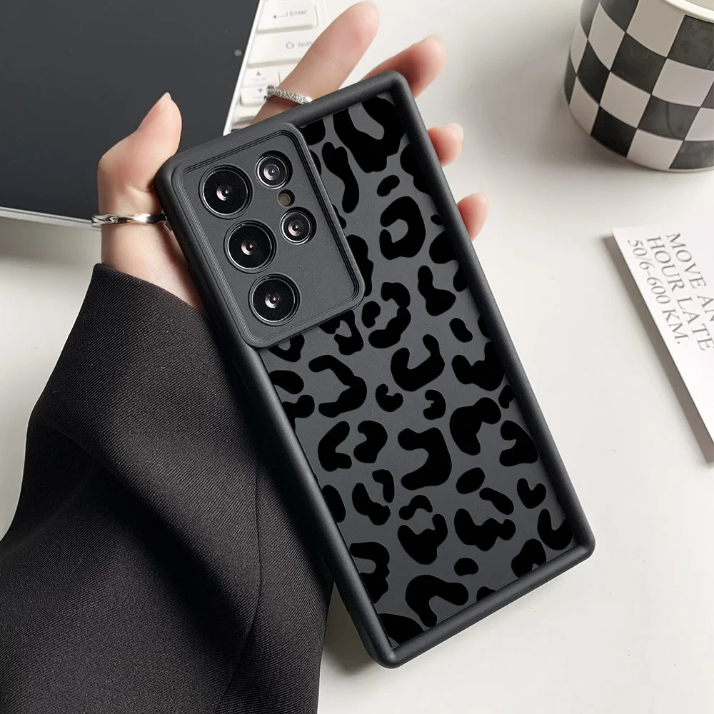 Funda de teléfono de silicona líquida para Samsung S25 Ultra Funda Galaxy S24 Plus S23 FE S22 S21 S20 FE Funda de leopardo a prueba de golpes Coque
