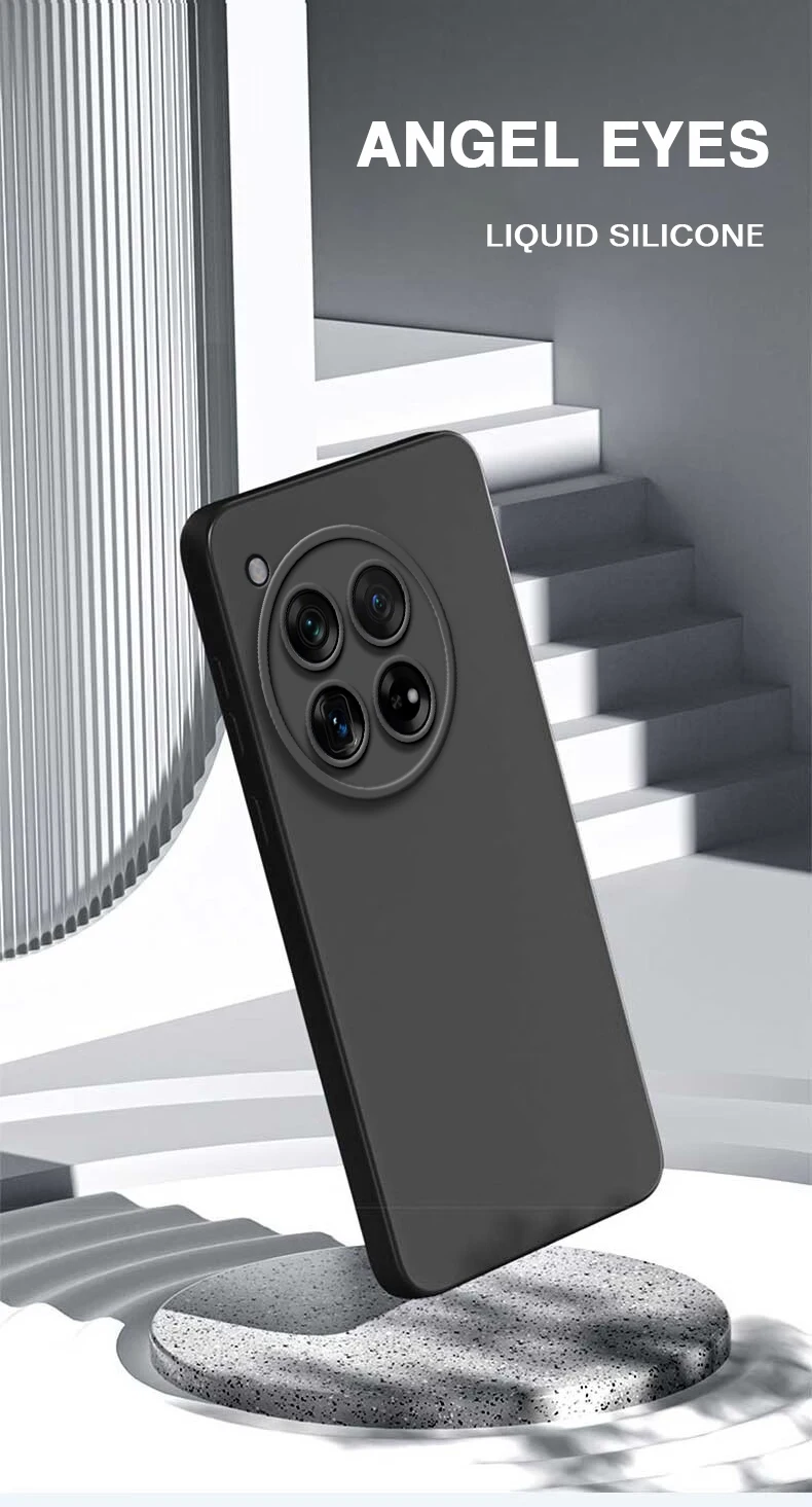 Comprar Funda de teléfono de silicona líquida suave y sólida para Oneplus 12R 1 + 12 5G Angel Eyes protección de cámara borde recto cubiertas traseras originales