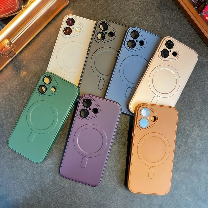 Funda de teléfono de silicona magnética para iPhone 16E 15 14 Plus 13 12 11 Pro Max para Magsafe funda protectora de lente de cristal con carga inalámbrica