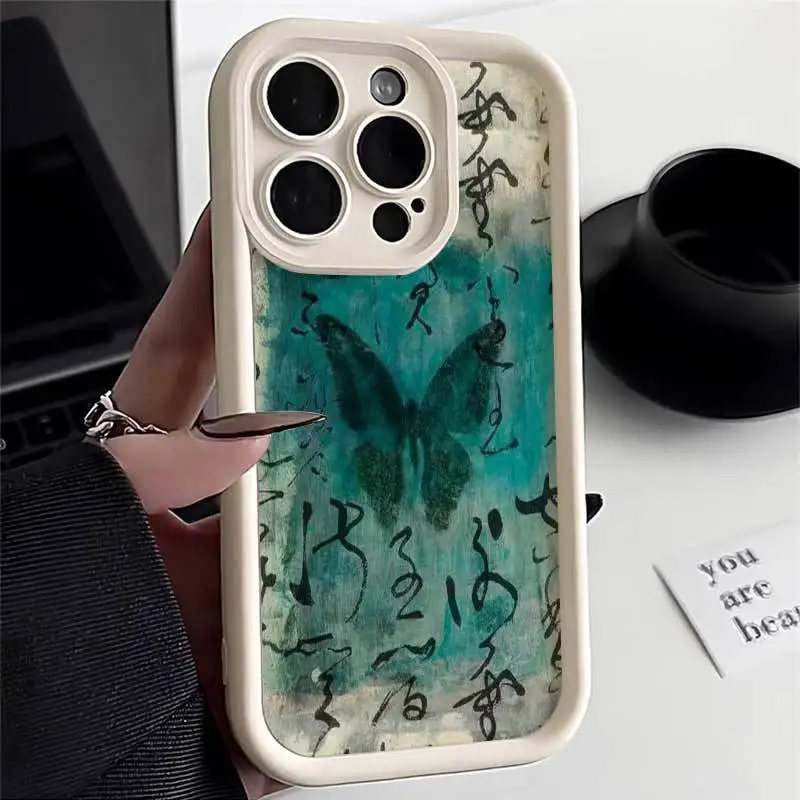 Funda de teléfono de silicona con mariposa Retro INS para iPhone 11, 12, 13, 14, 15 16 Pro Max Plus 16E XS X XR SE2, funda trasera de parachoques a prueba de golpes