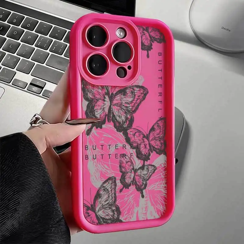 Comprar Funda de teléfono de silicona con mariposa Retro INS para iPhone 11, 12, 13, 14, 15 16 Pro Max Plus 16E XS X XR SE2, funda trasera de parachoques a prueba de golpes