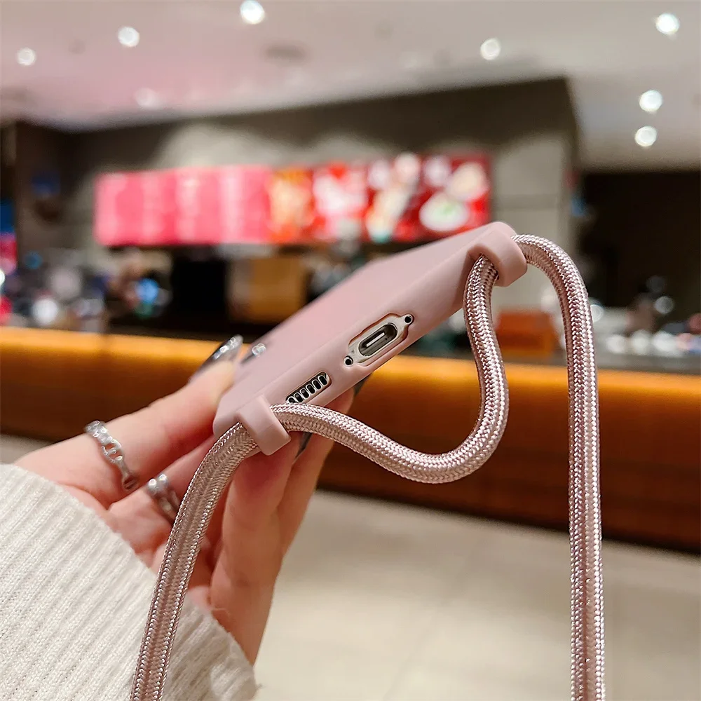 Funda de teléfono de silicona mate con correa de cordón cruzado para Samsung S24 S23 Ultra FE S21 S22 Plus, funda trasera a prueba de golpes de Color sólido