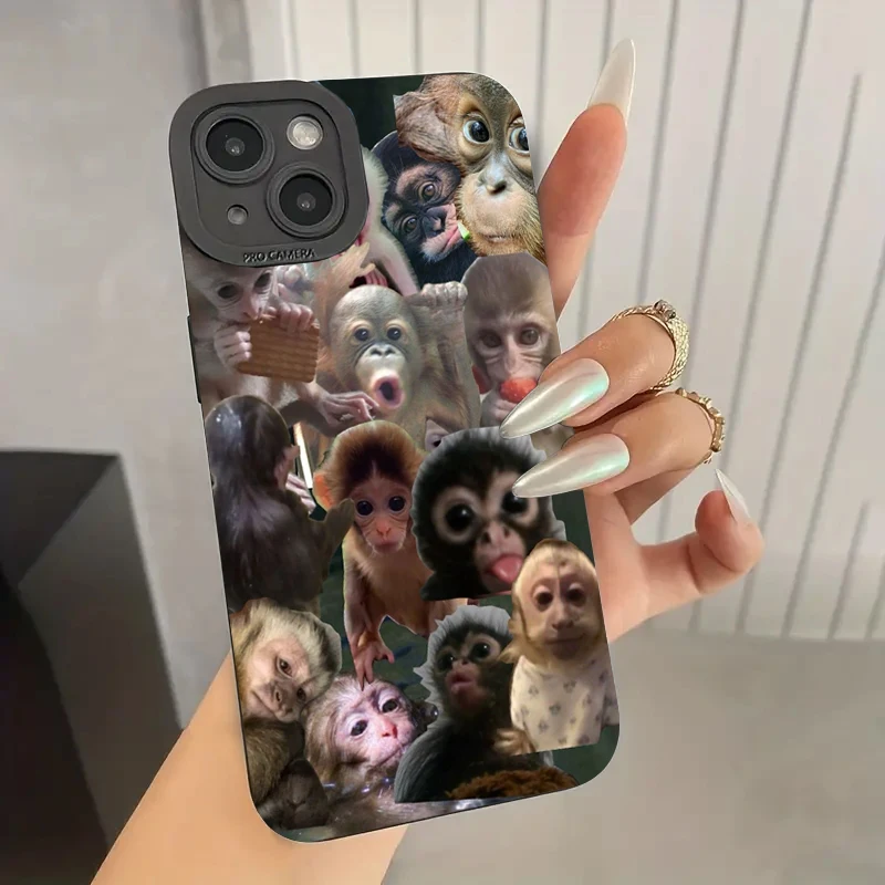Funda de teléfono de silicona divertida Mono para iPhone 16 15 Pro Max 14 13 12 11 Pro 7 8 Plus 16E XR X XS SE 2020, funda suave a prueba de golpes