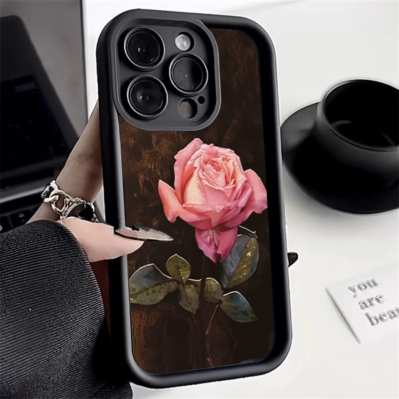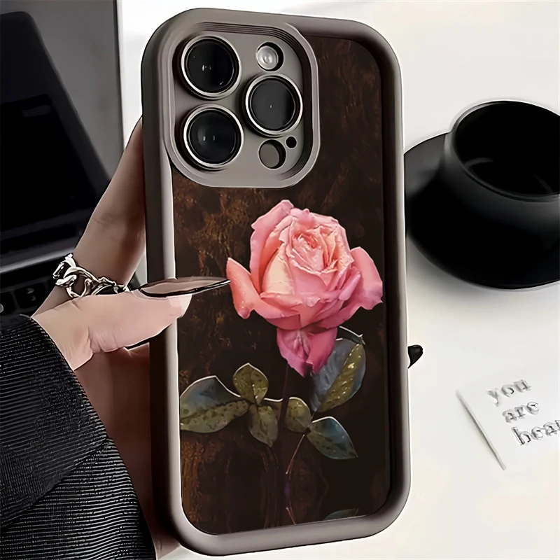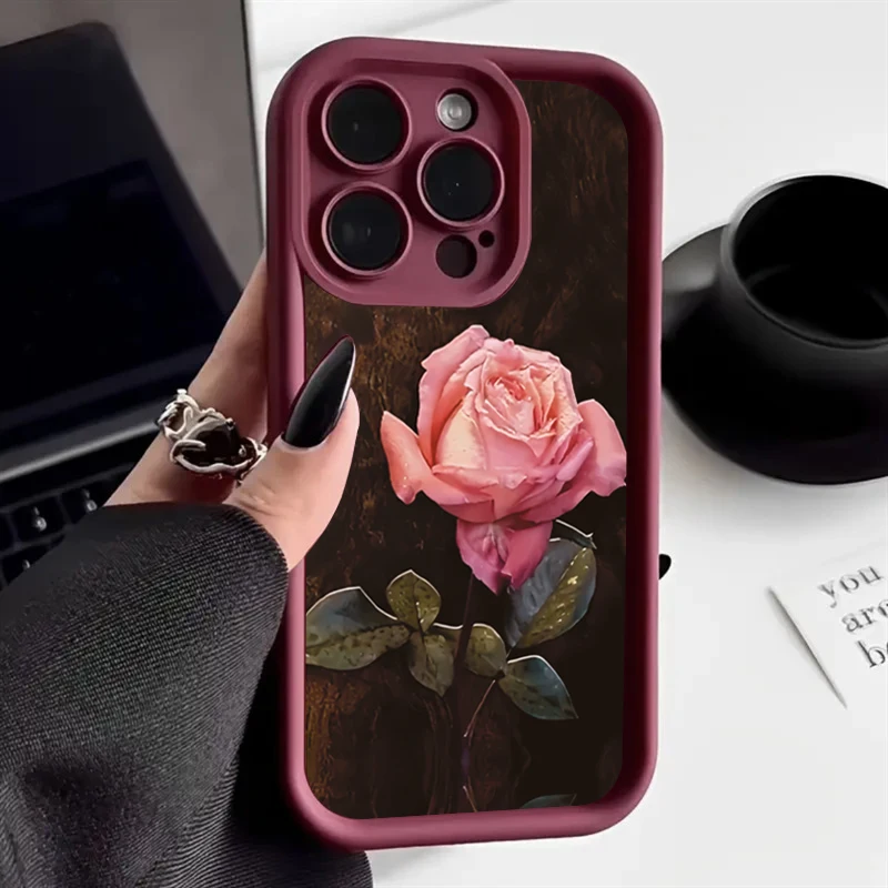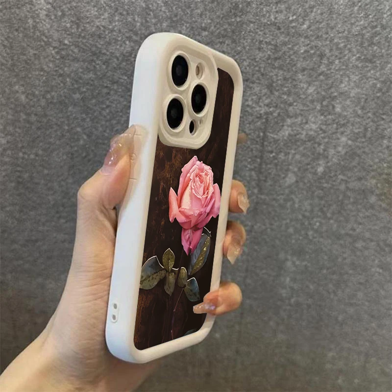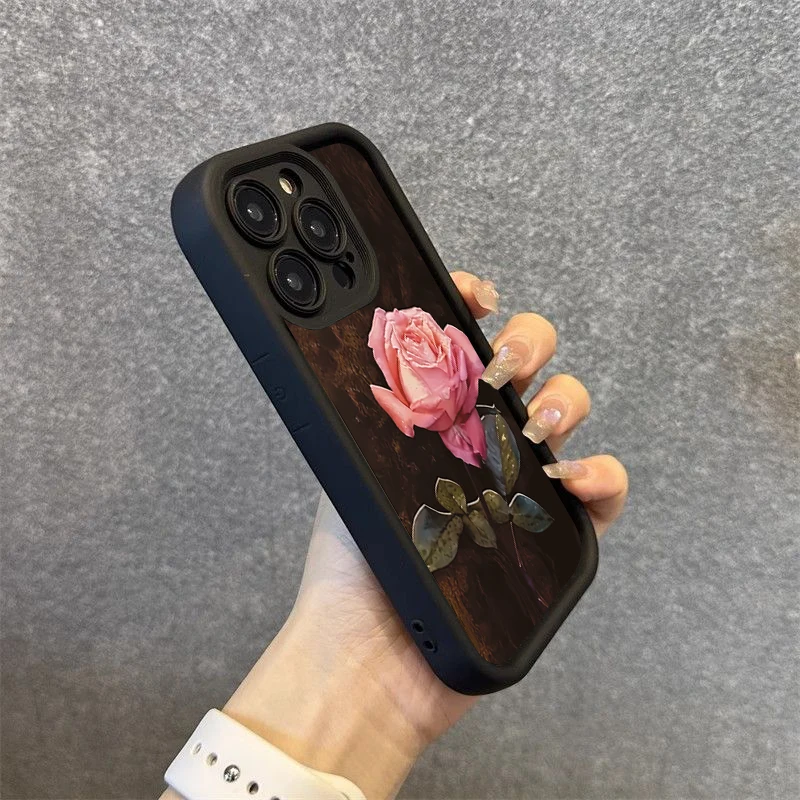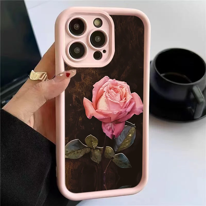 Funda de teléfono de silicona con patrón Floral rosa estético para iPhone 16 Pro Max 15 14 13 12 11 7 8 Plus X XS XR SE 16E cubierta a prueba de golpes