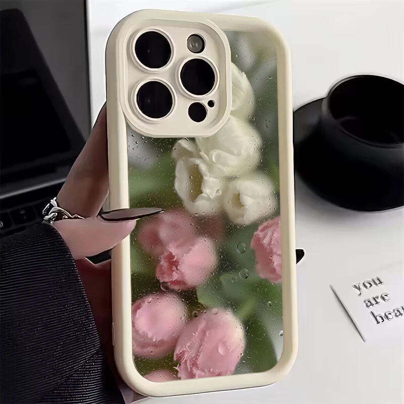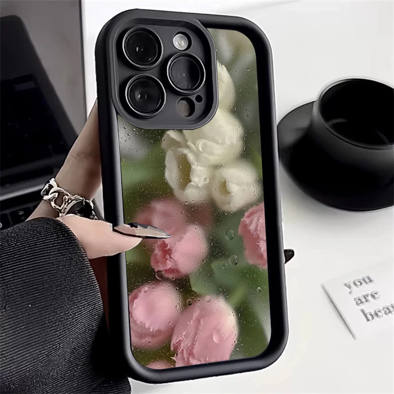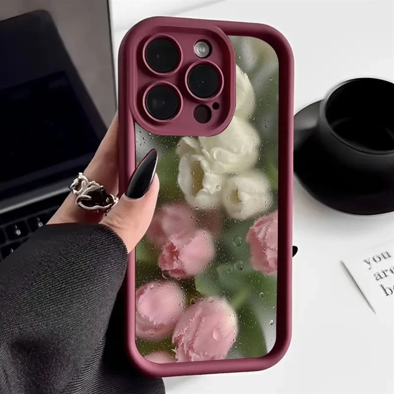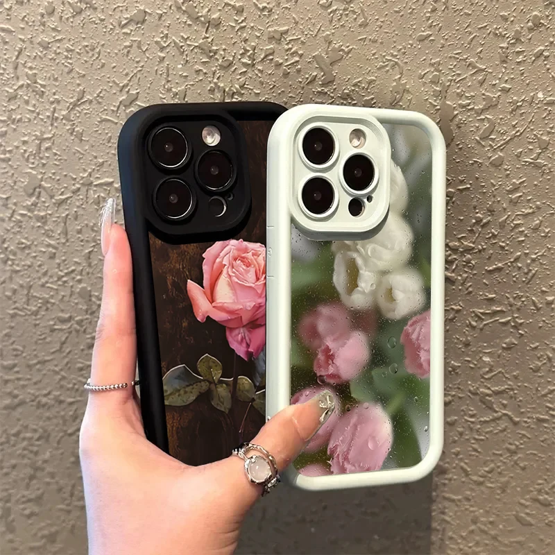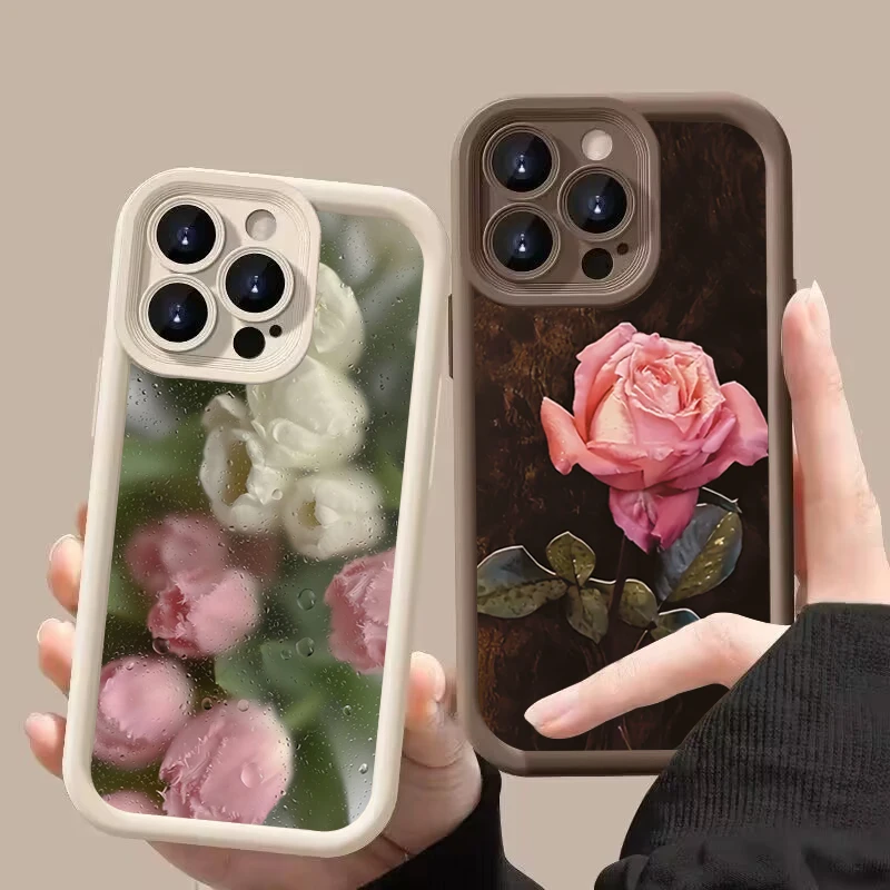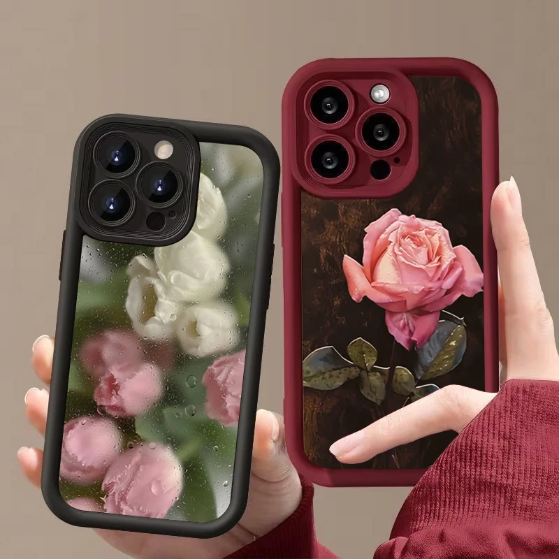 Funda de teléfono de silicona con patrón Floral rosa estético para iPhone 16 Pro Max 15 14 13 12 11 7 8 Plus X XS XR SE 16E cubierta a prueba de golpes