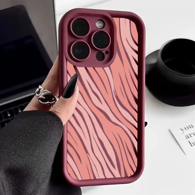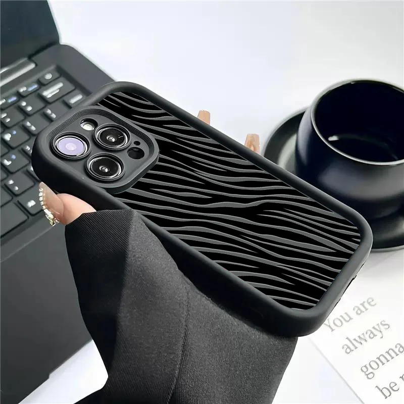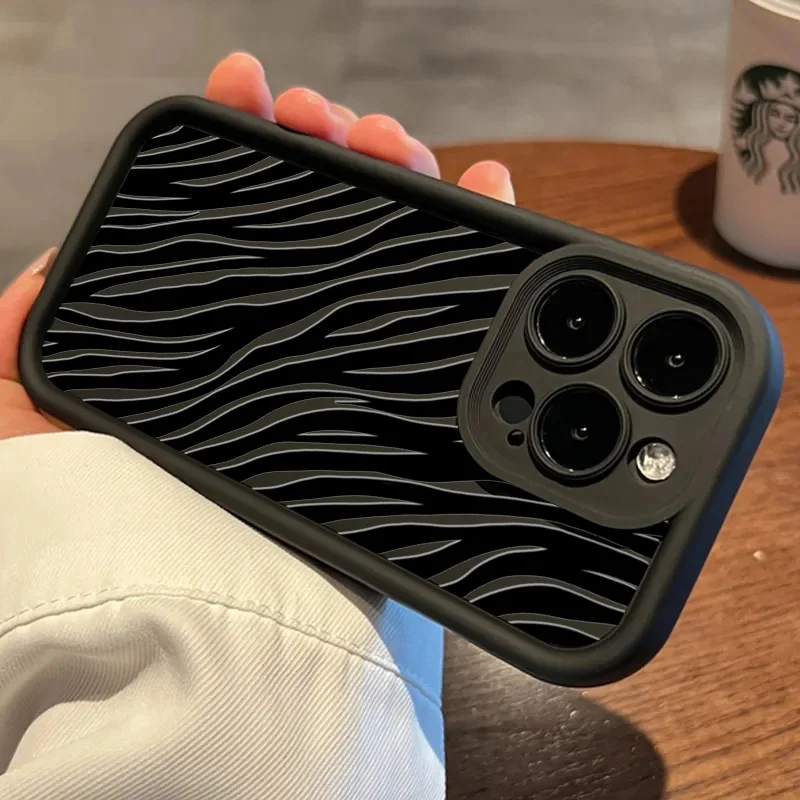 Comprar Funda de teléfono de silicona con patrón de rayas de cebra para iPhone 16, funda para iPhone 11 12 13 14 15 Pro Max Mini 7 8 Plus SE 2 X XR XS Max