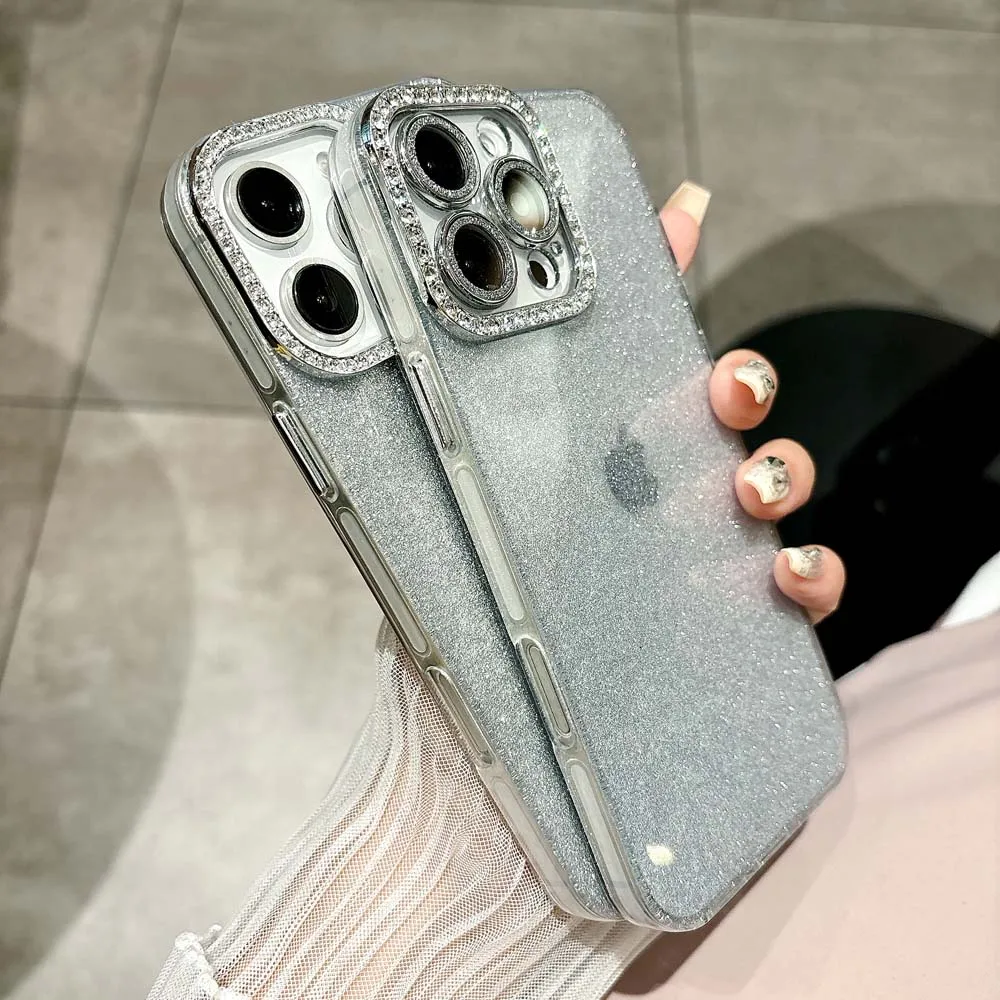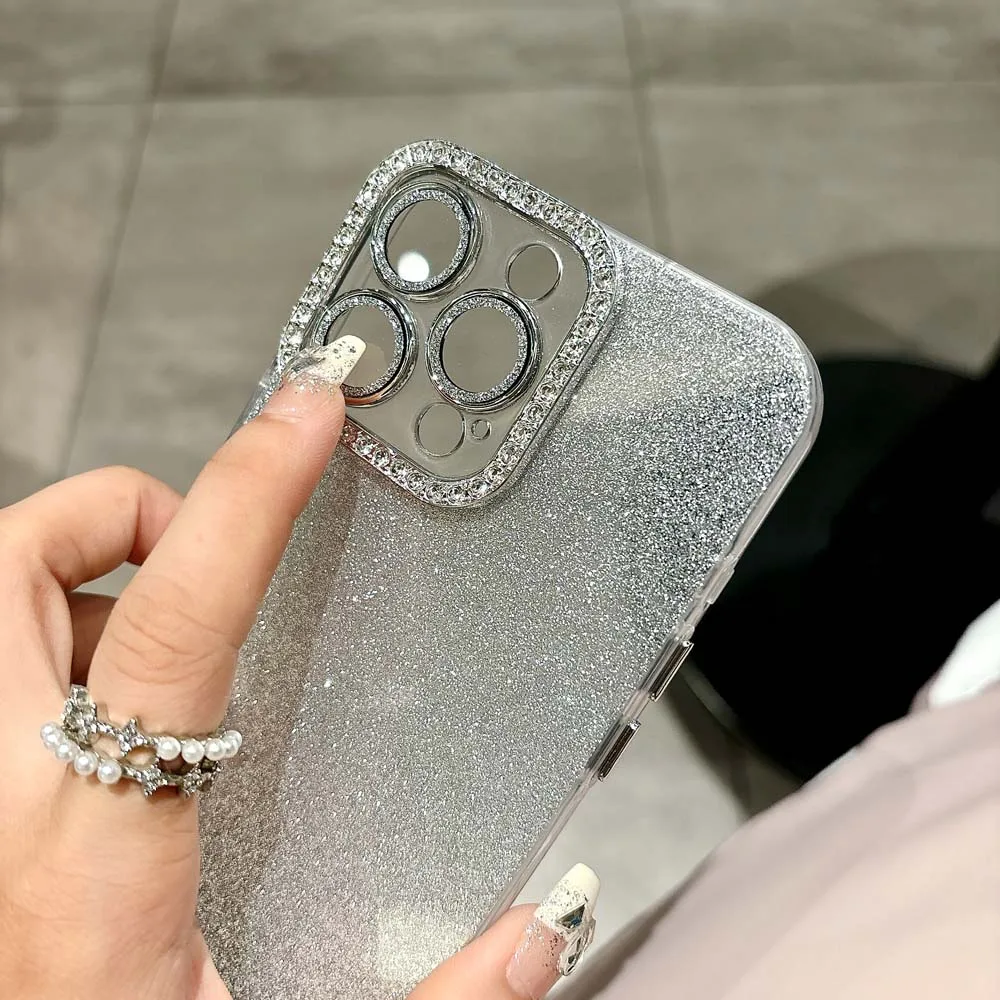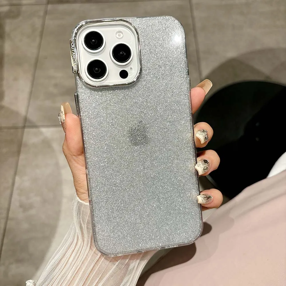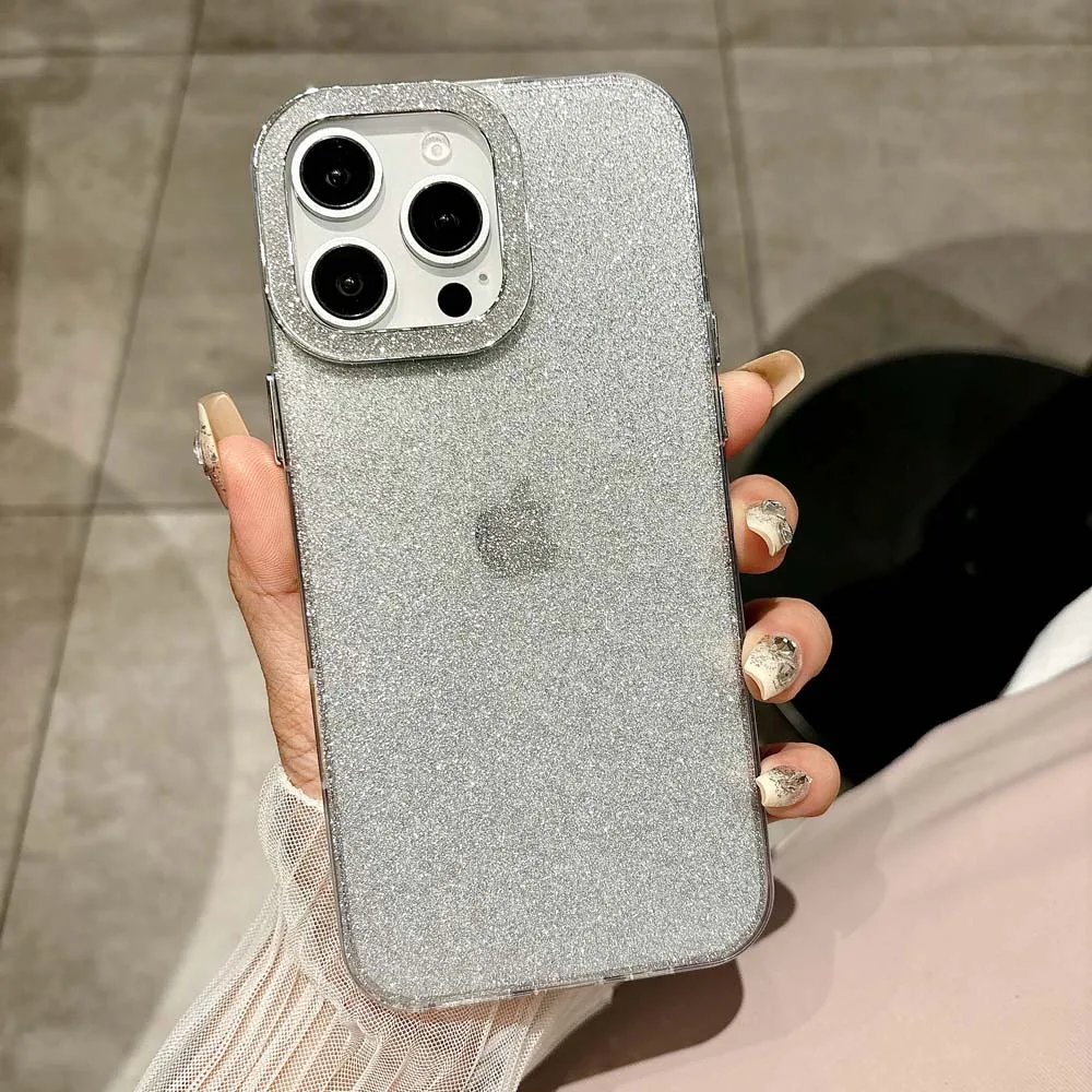 Funda de teléfono de silicona con purpurina para iPhone 16, 15, 14, Plus, 13, 12, 11 Pro Max, carcasa protectora a prueba de golpes, funda trasera IMD suave de TPU
