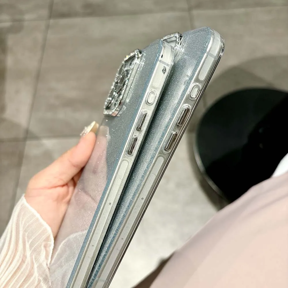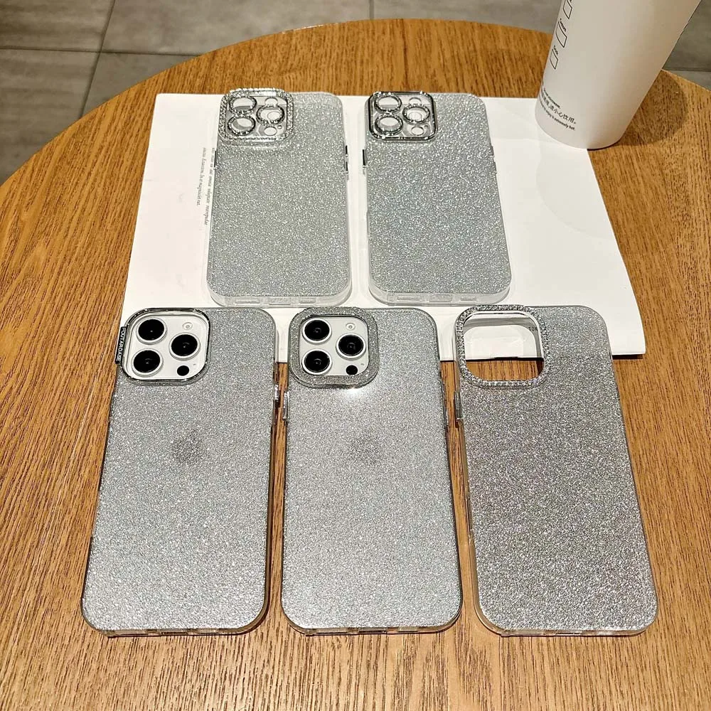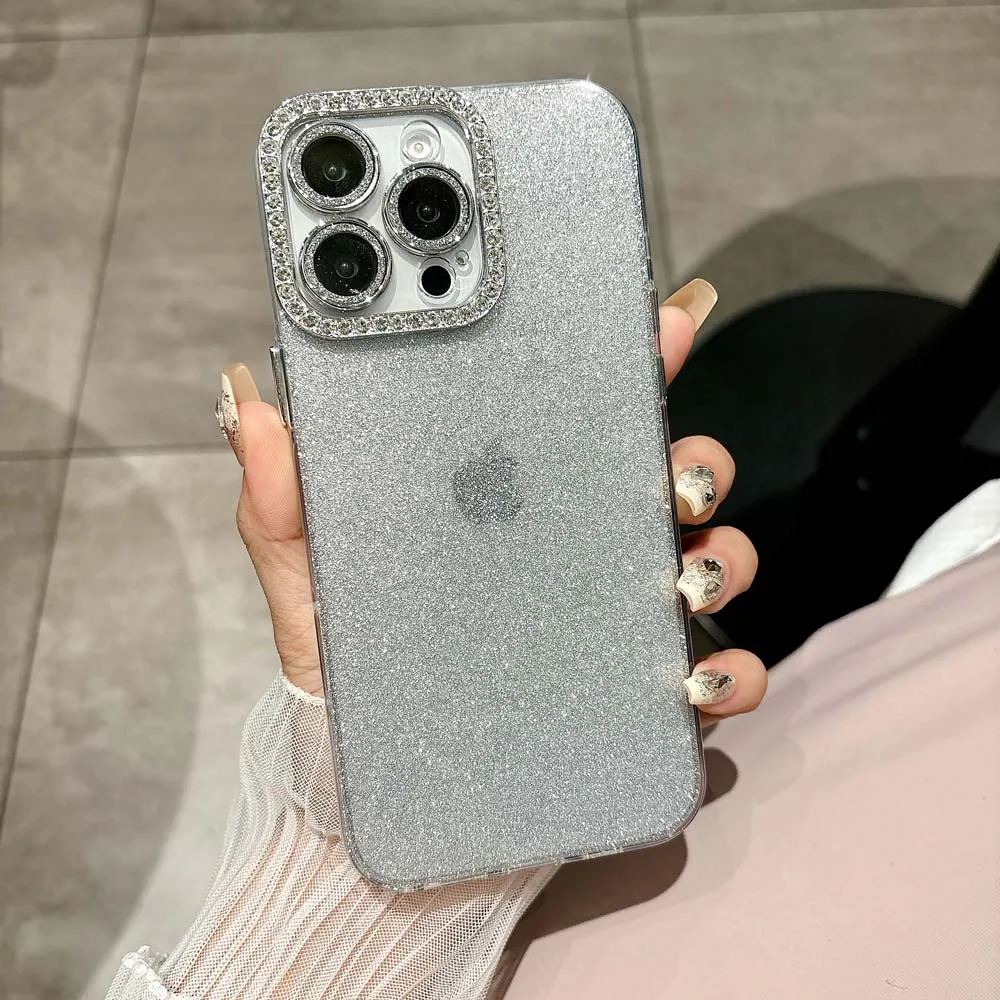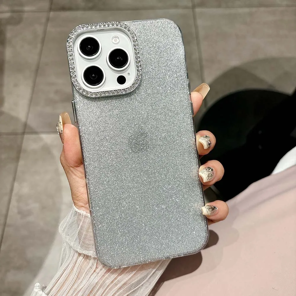 Funda de teléfono de silicona con purpurina para iPhone 16, 15, 14, Plus, 13, 12, 11 Pro Max, carcasa protectora a prueba de golpes, funda trasera IMD suave de TPU
