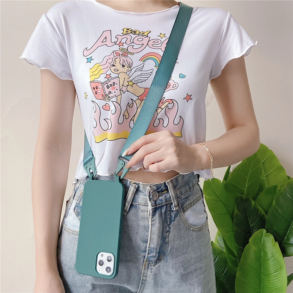 Crossbody Neck Strap Soft Silicone Phone Case For Samsung Galaxy S22 Ultra S21 S20 Plus FE Note 20 10 S10 S9 8 Cord Rope Cover
