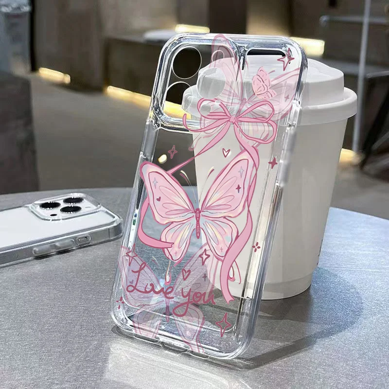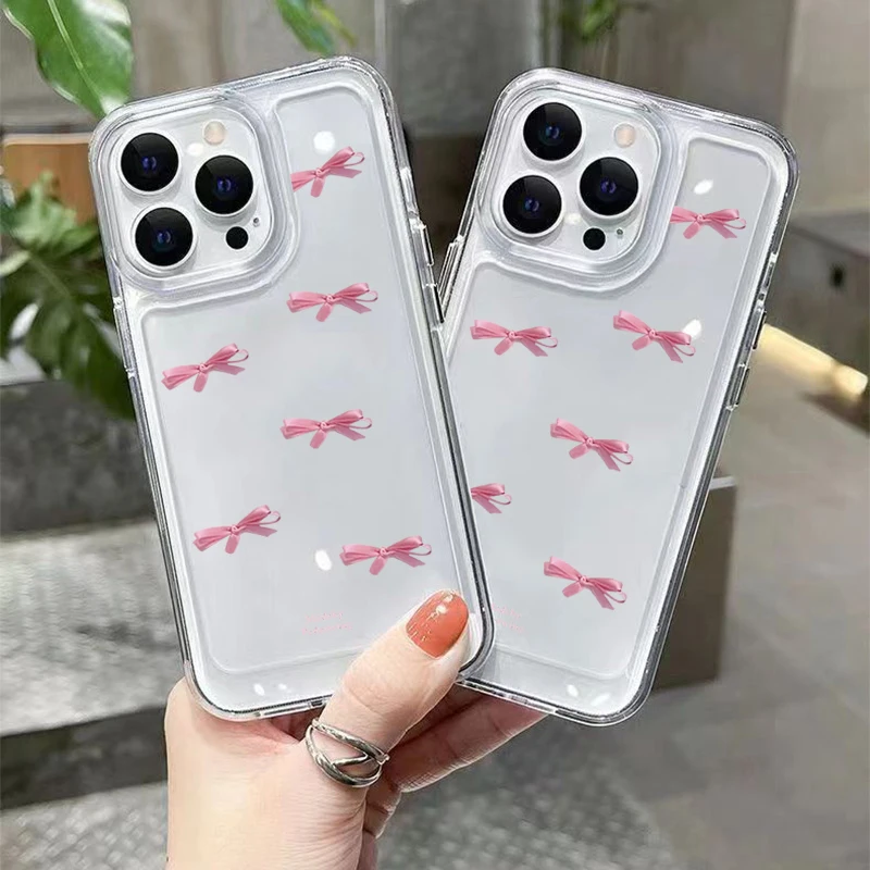 Funda de teléfono de silicona suave con lazo rosa para iPhone 15 16 Pro Max, funda transparente a prueba de golpes para iPhone 14 13 12 11 XS XR X 7 8 Plus