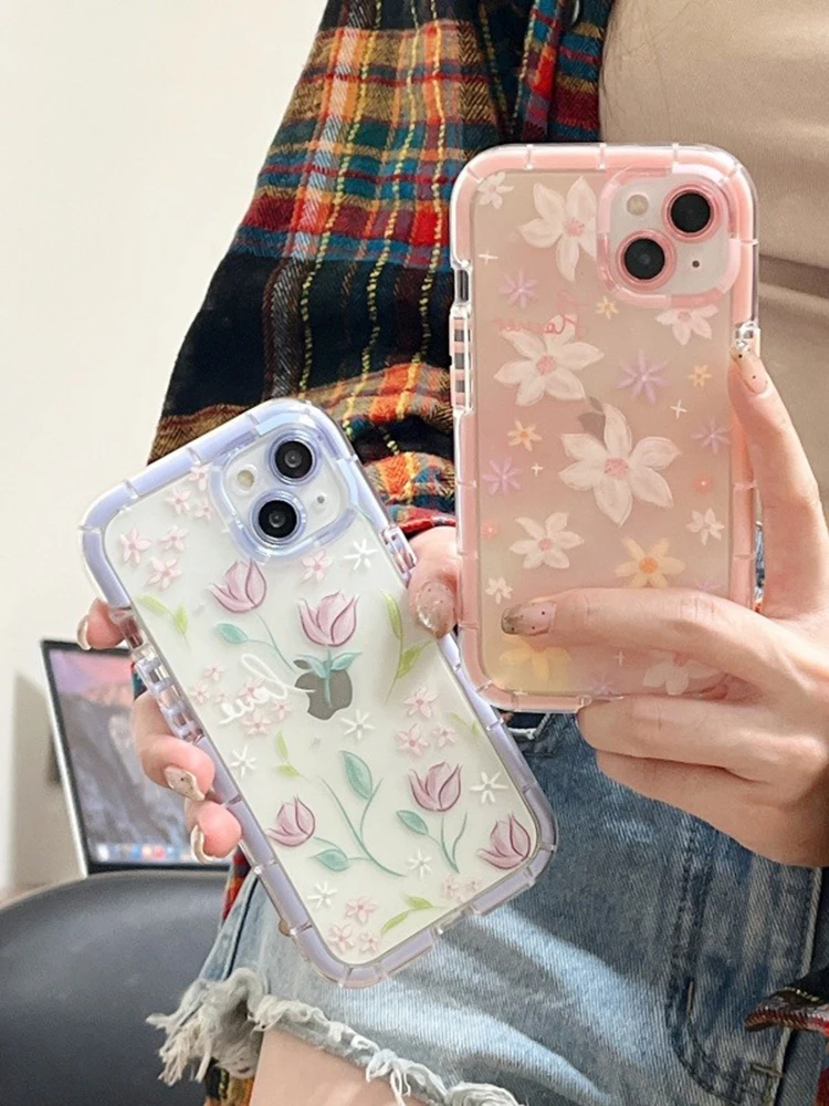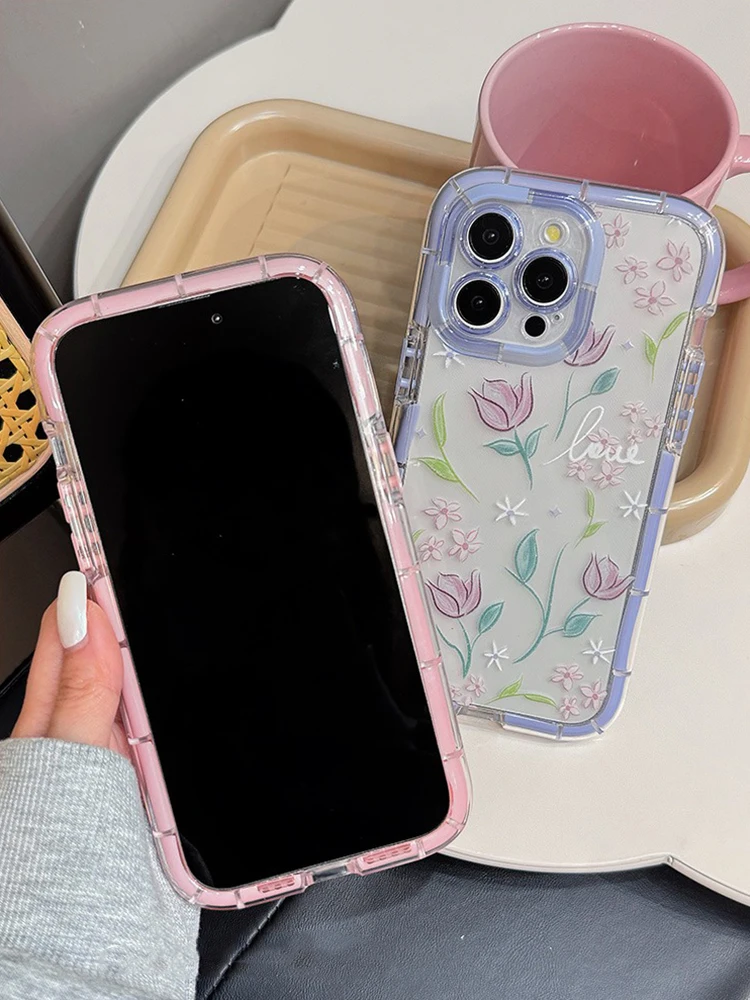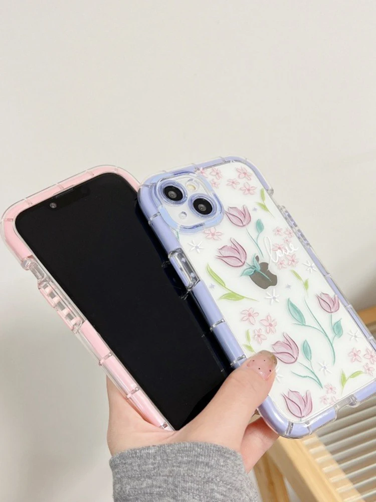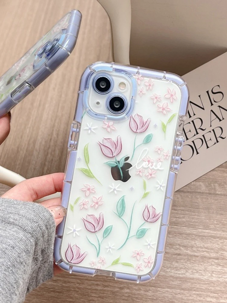 Comprar Funda de teléfono de silicona suave luminosa con flores de tulipán con estilo para iPhone 15, 14, 13, 12, 11 Pro Max 14 Plus, funda trasera de parachoques a prueba de golpes