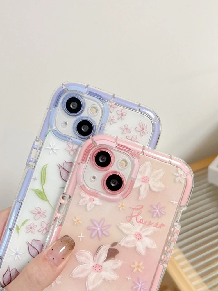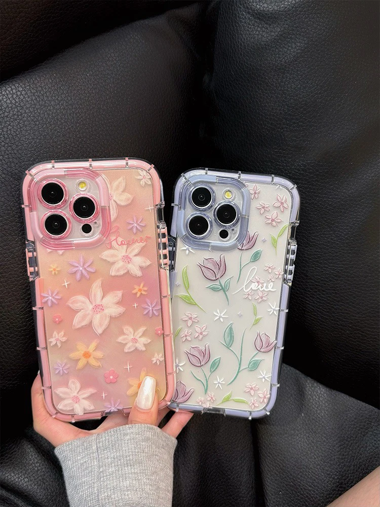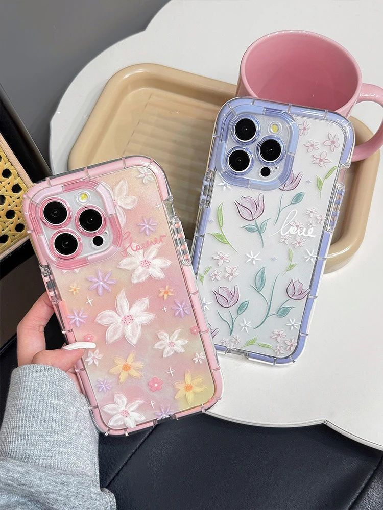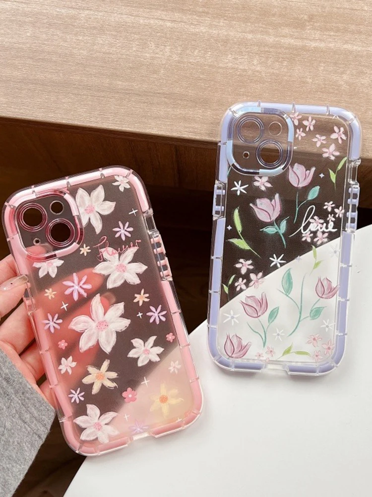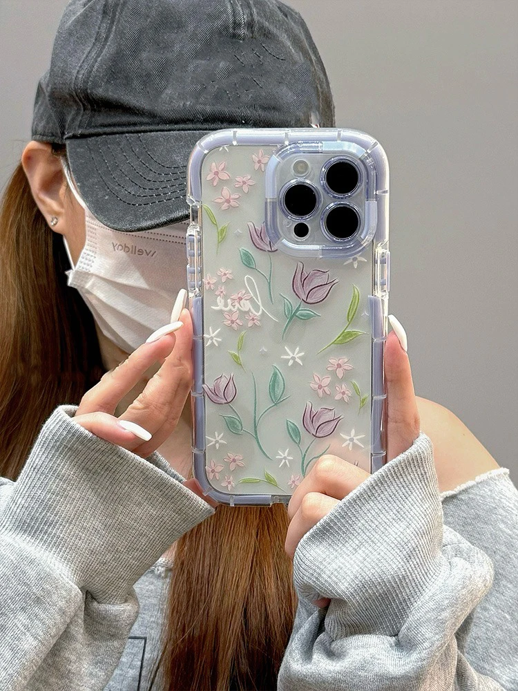 Comprar Funda de teléfono de silicona suave luminosa con flores de tulipán con estilo para iPhone 15, 14, 13, 12, 11 Pro Max 14 Plus, funda trasera de parachoques a prueba de golpes