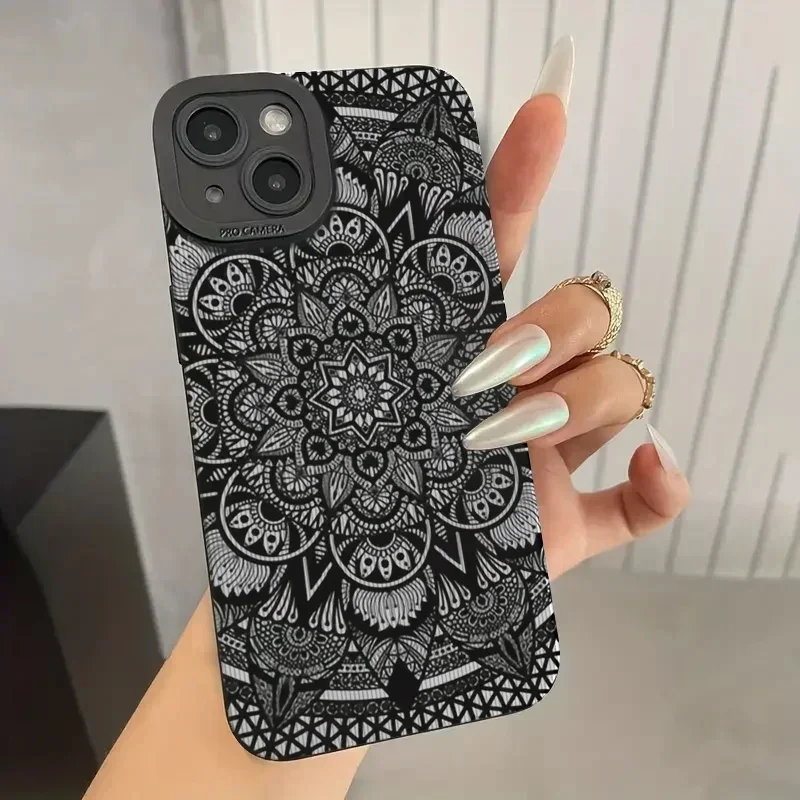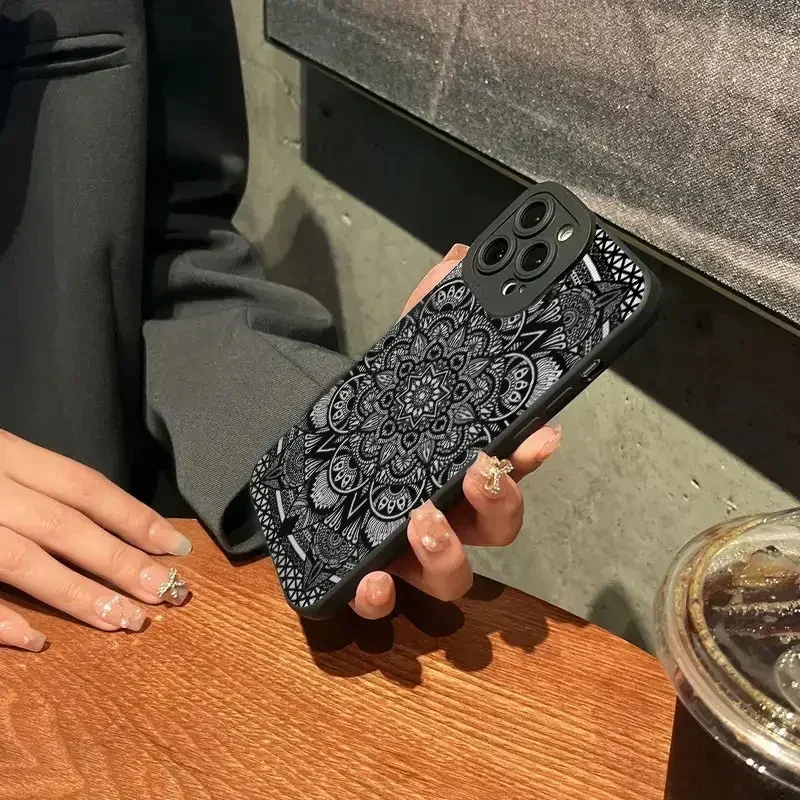 Comprar Funda de teléfono de silicona suave con tótem Floral Vintage a la moda para iPhone 16 15 14 Pro Max 13 12 11 XS X XR 7 8 Plus SE 2020 Fundas