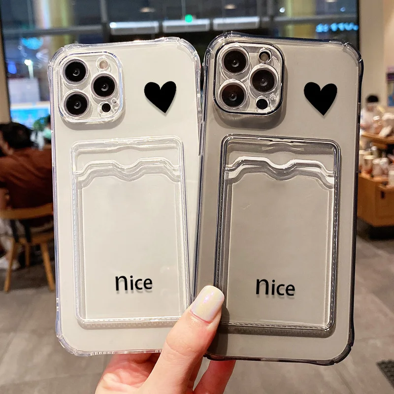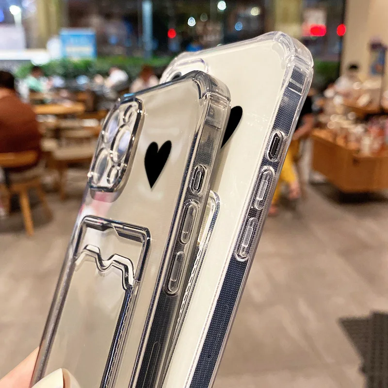 Funda de silicona con tarjetero para teléfono iPhone 17 Pro Max Fundas iPhone 11 13 16 14 15 12 16E XR X Xs 7 8 Plus SE Love Heart Cover