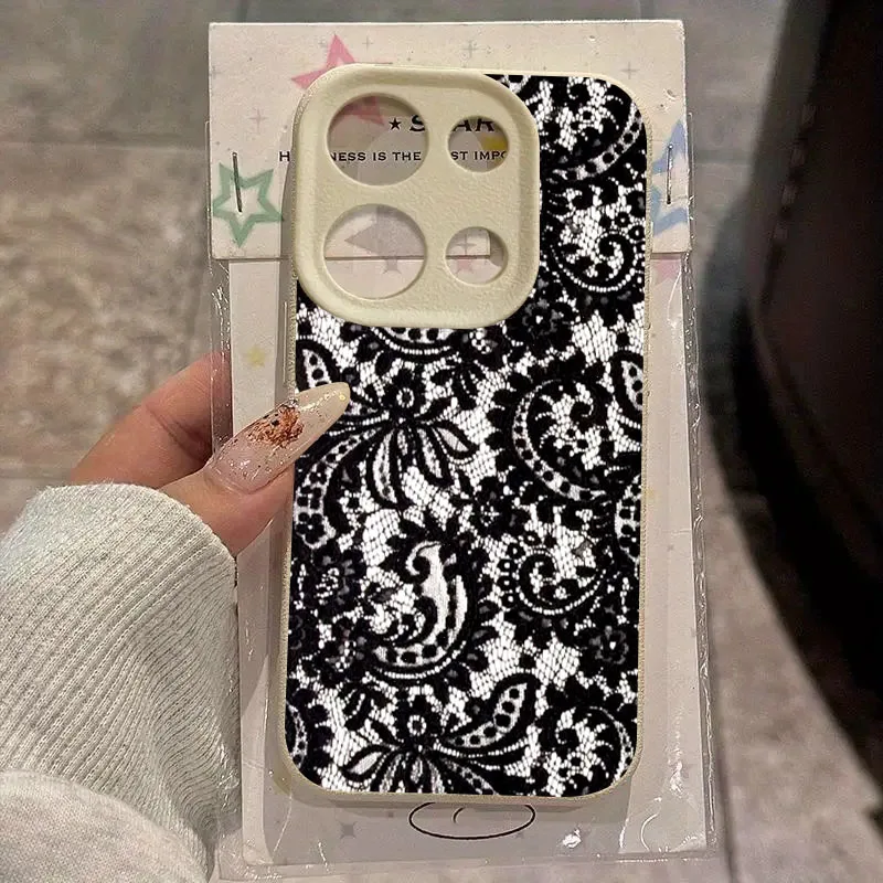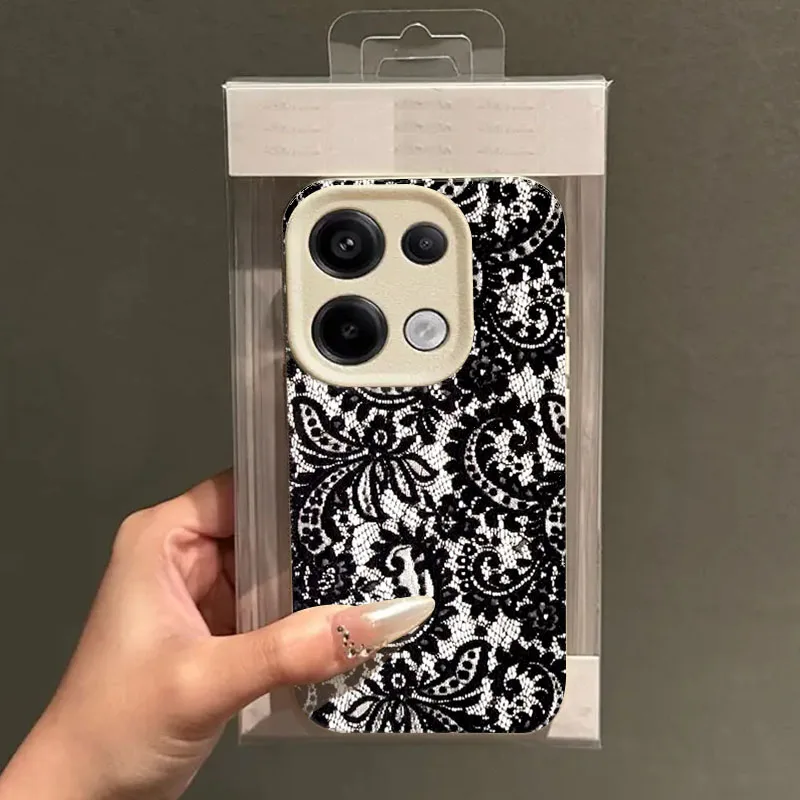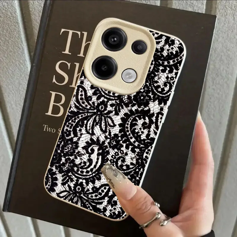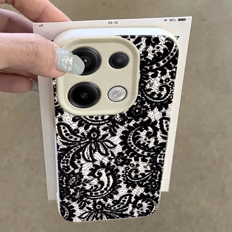 Funda de teléfono Simple con diseño de encaje negro y diseño Lichee para Xiaomi Poco F7 Pro 5G M6 Pro 4G X6 X5 F5 X7 funda de parachoques a prueba de golpes
