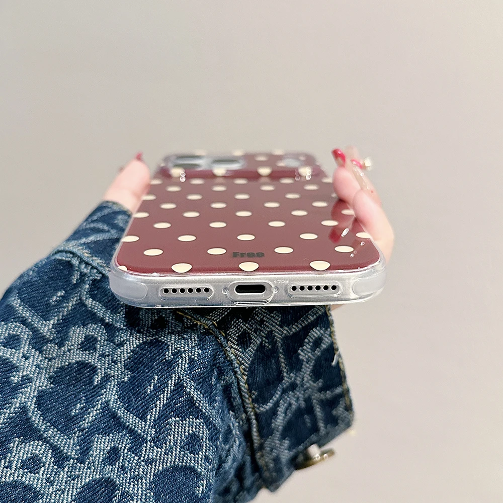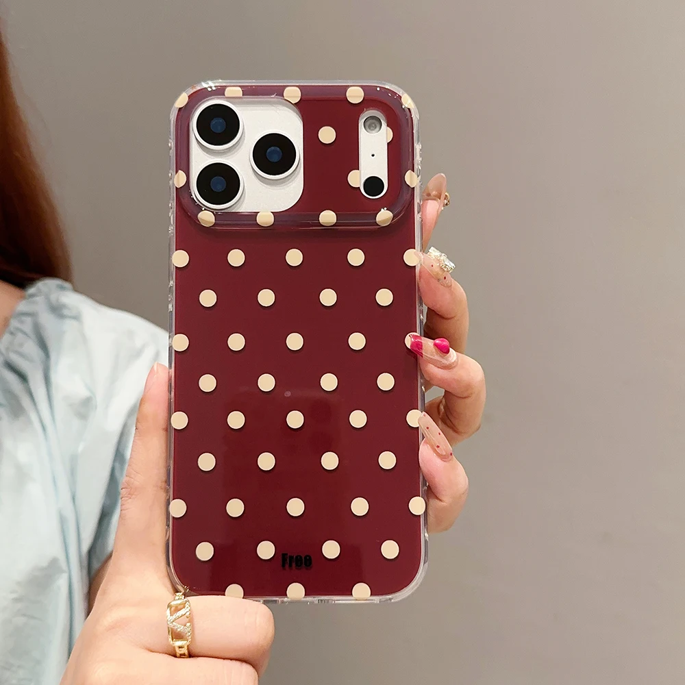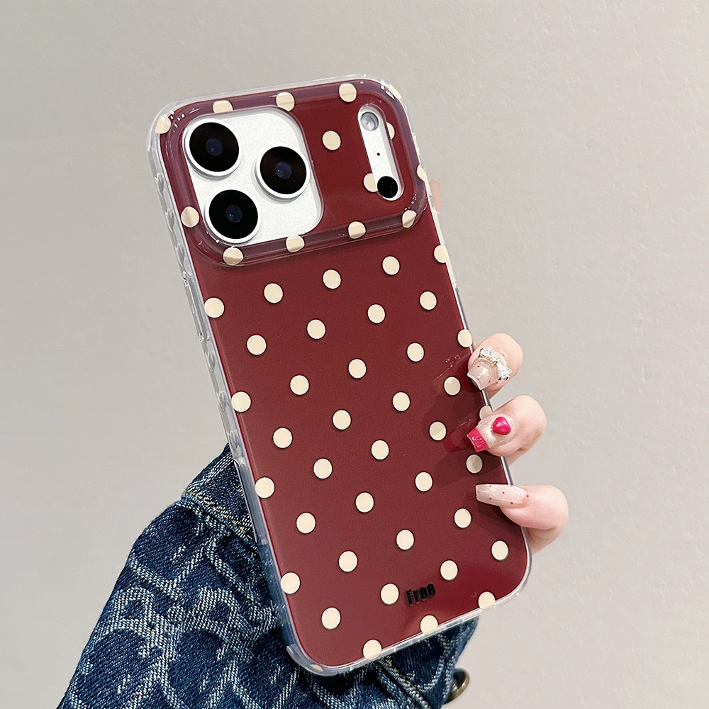 Funda de teléfono Simple de lunares y rojo vino para iPhone 13 15 14 16 Pro Max, funda protectora a prueba de golpes para Iphone 17 Pro 17promax