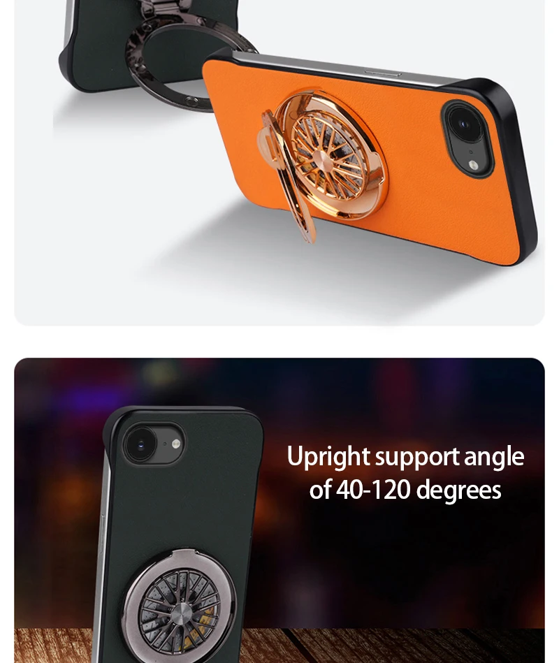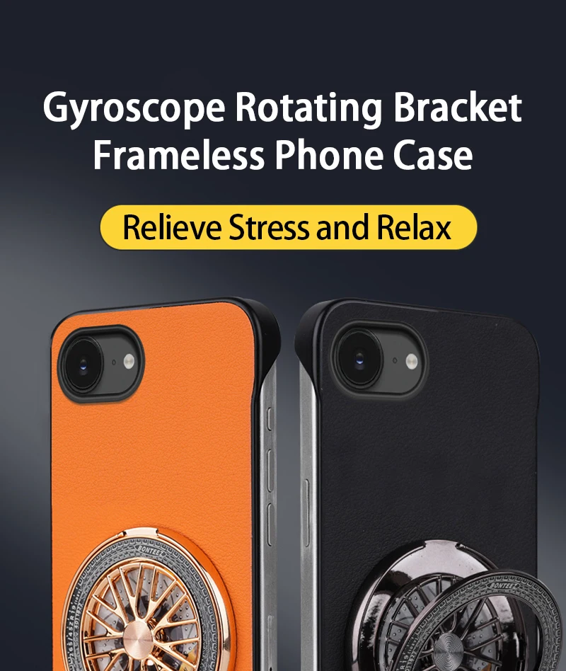 Comprar Funda de teléfono sin marco acrílica con textura de cuero de lujo para iPhone 16E 16 15 14 Plus 13 12 cubierta de soporte plegable con giroscopio giratorio