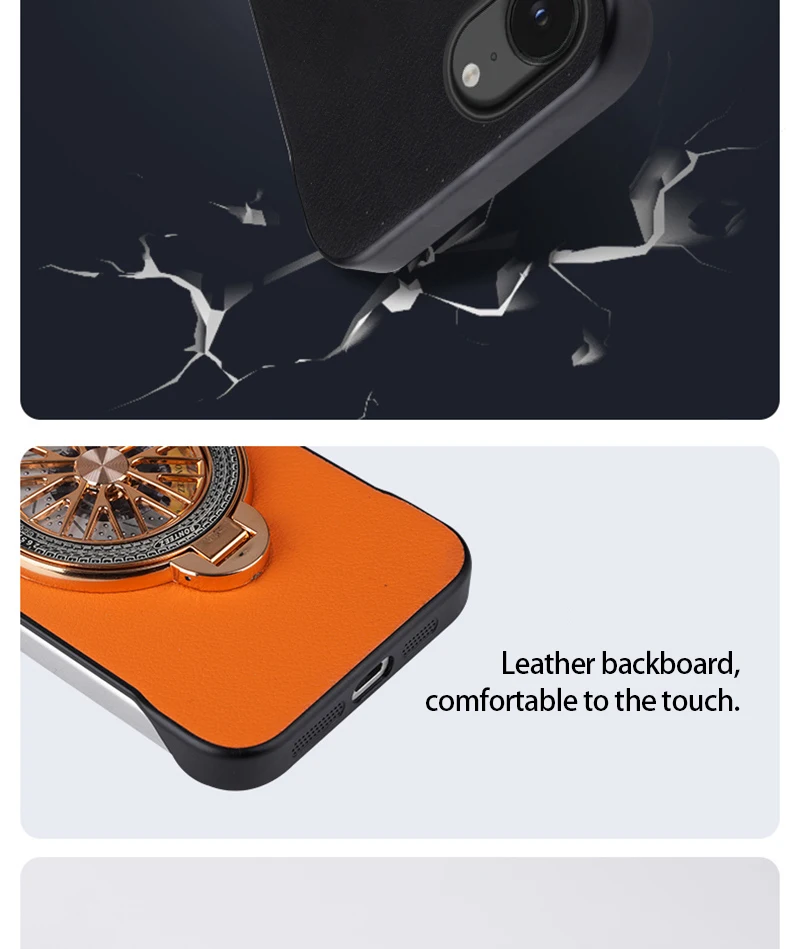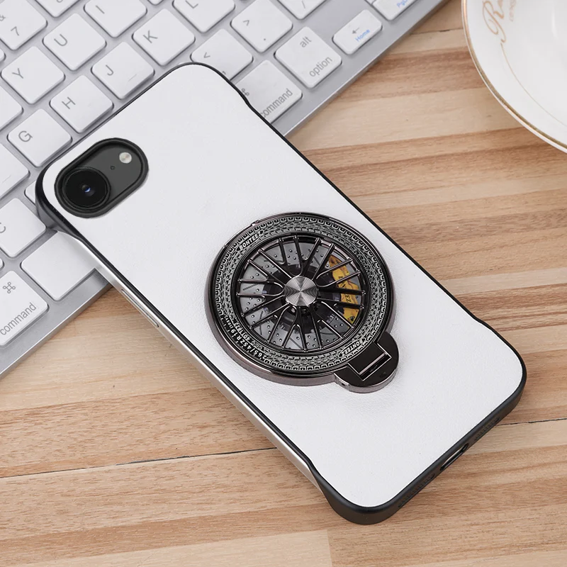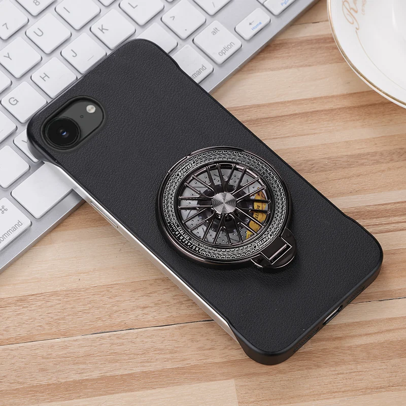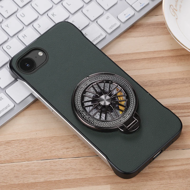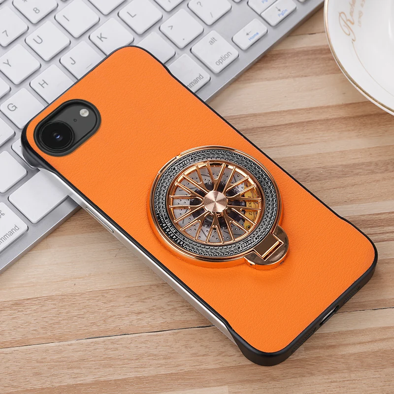 Funda de teléfono sin marco acrílica con textura de cuero de lujo para iPhone 16E 16 15 14 Plus 13 12 cubierta de soporte plegable giroscopio giratorio