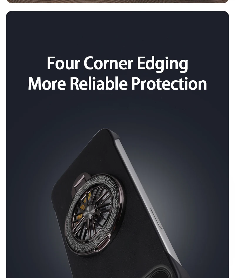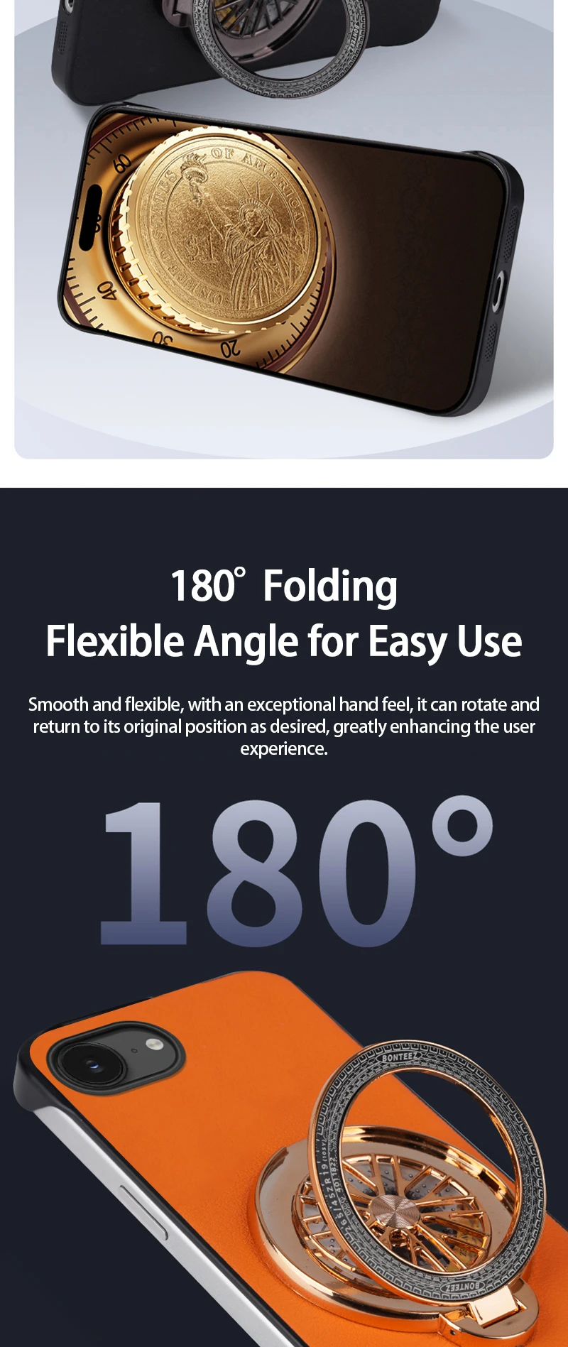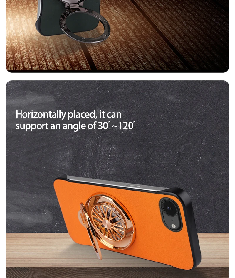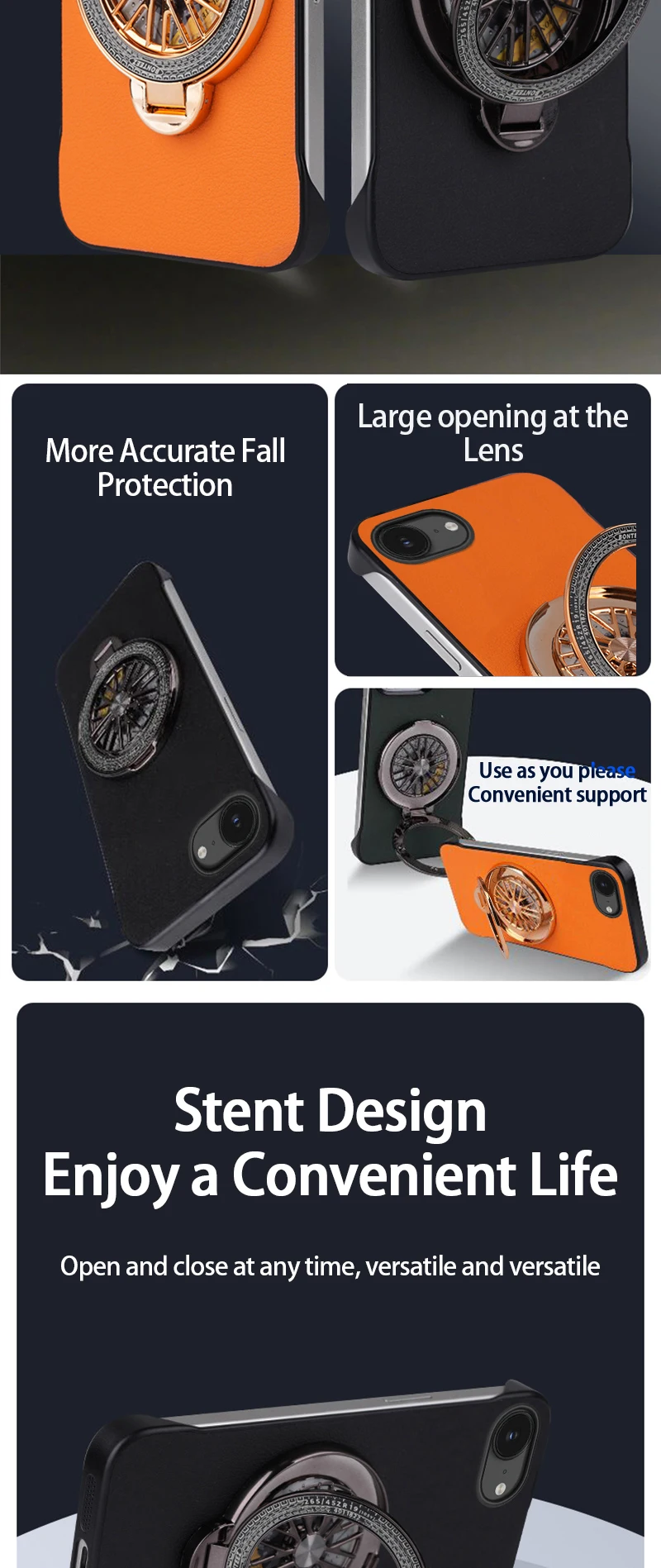 Funda de teléfono sin marco acrílica con textura de cuero de lujo para iPhone 16E 16 15 14 Plus 13 12 cubierta de soporte plegable giroscopio giratorio