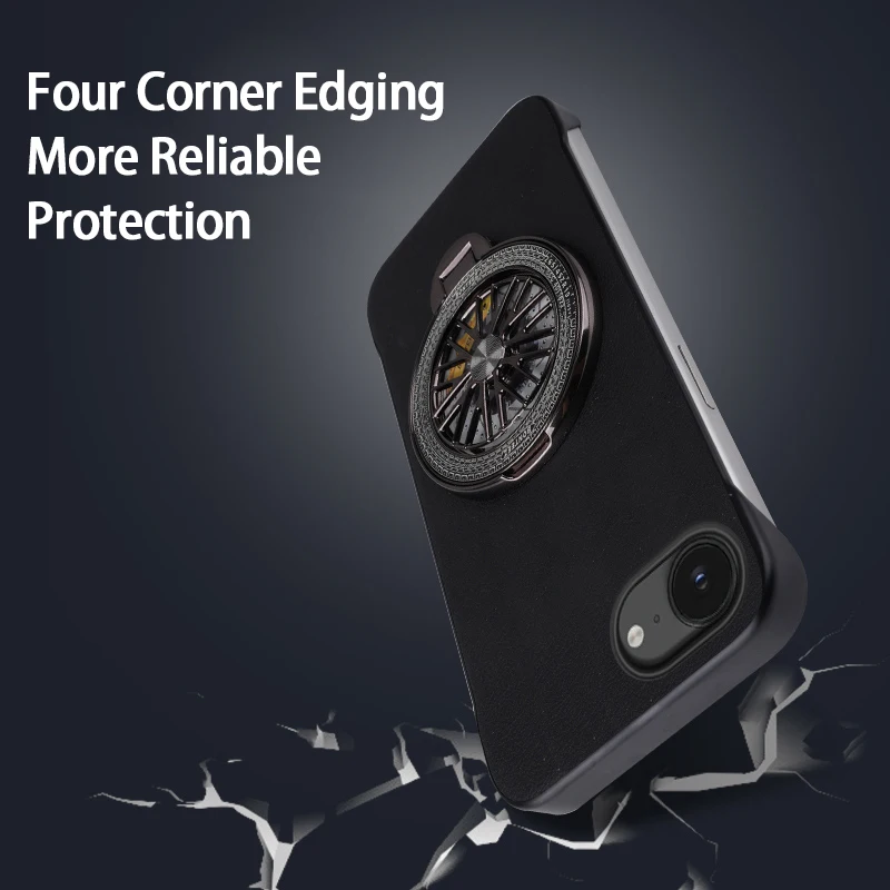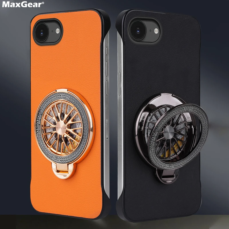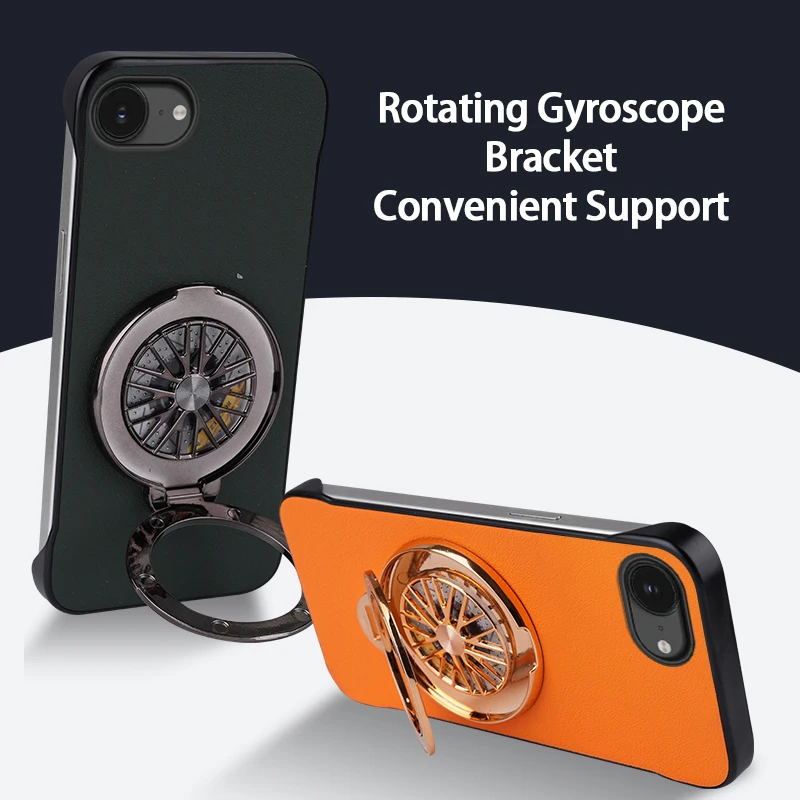 Comprar Funda de teléfono sin marco acrílica con textura de cuero de lujo para iPhone 16E 16 15 14 Plus 13 12 cubierta de soporte plegable con giroscopio giratorio