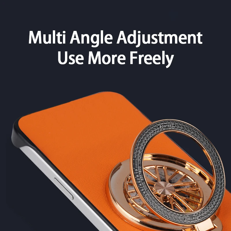 Funda de teléfono sin marco acrílica con textura de cuero de lujo para iPhone 16E 16 15 14 Plus 13 12 cubierta de soporte plegable giroscopio giratorio