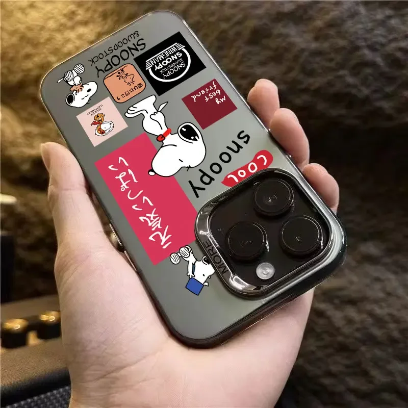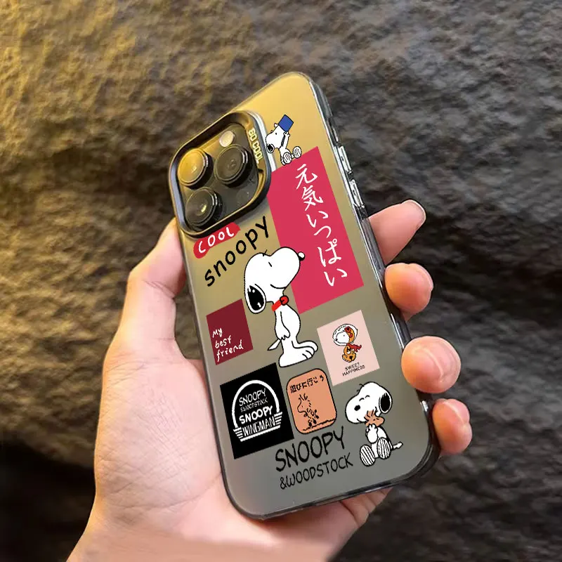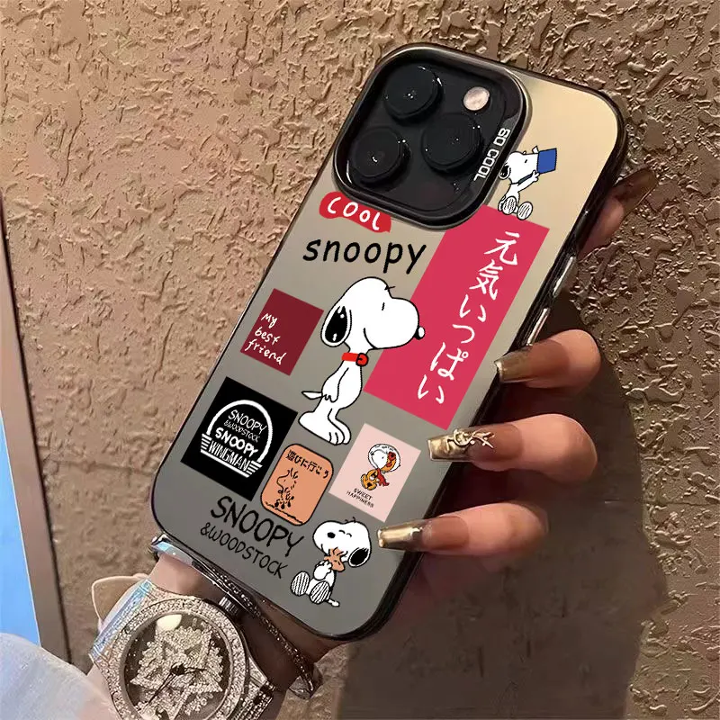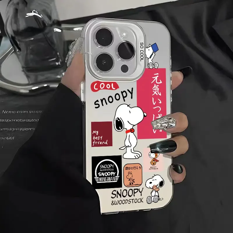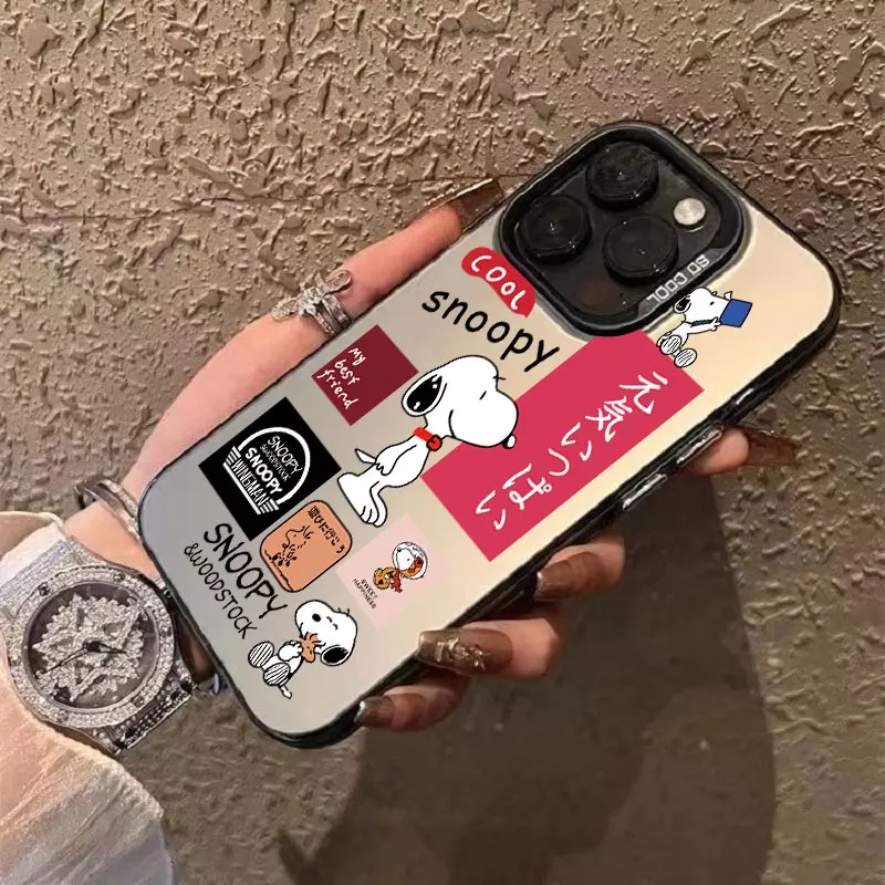Comprar Funda de teléfono Snoopy Lively para iPhone 16 15 14 13 12 11 Pro Max X XR XS MAX 8 7 Plus SE2022 Funda de aceite ondulado mate caramelo