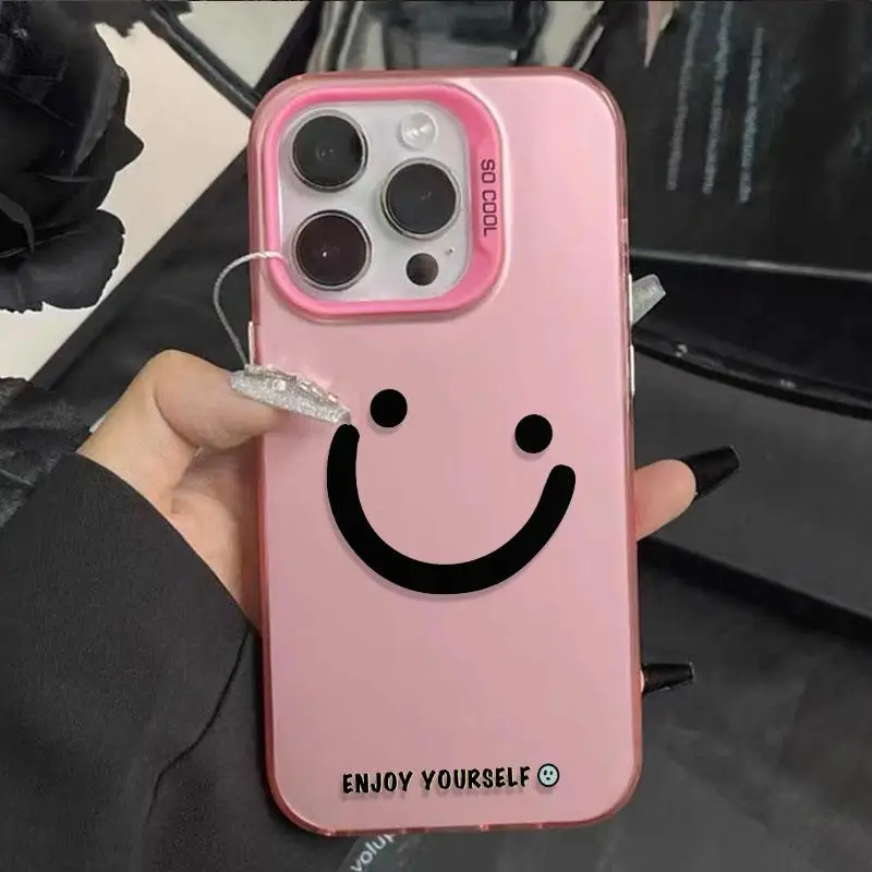 Comprar Funda de teléfono con sonrisa para iPhone 7, 8 Plus XR XS 11 Pro 12 13 Mini 14 15 16 Pro Max, carcasa protectora de pantalla a prueba de polvo y golpes