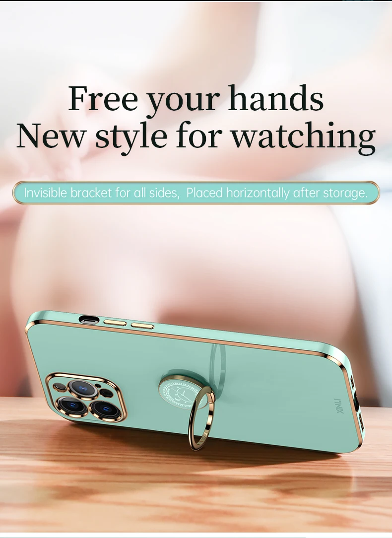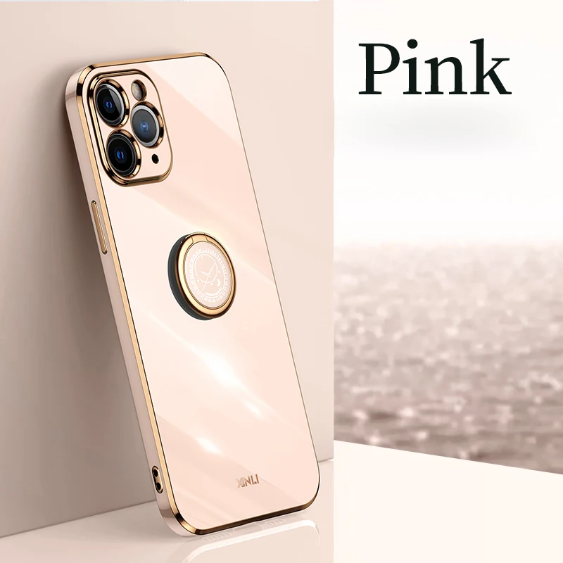 Comprar Funda de teléfono con soporte de anillo chapado, cubierta de silicona de lujo para Iphone 11, 12 Pro Max, 12pro, 11pro, 8, 7, 6 S Plus, 10, X, Xr