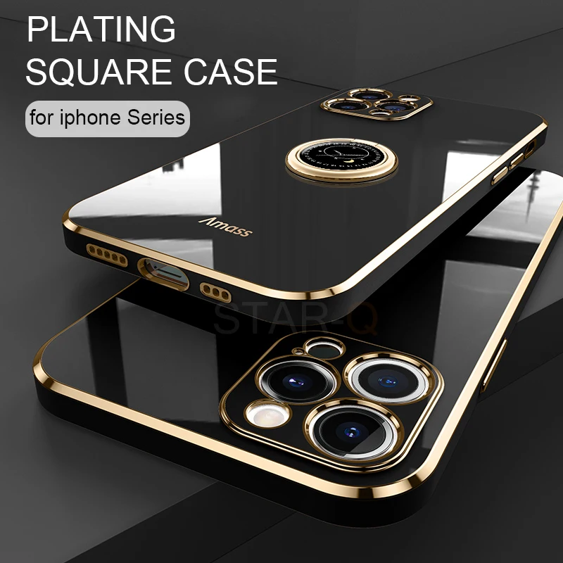 Comprar Funda de teléfono con soporte de anillo chapado, cubierta de silicona de lujo para Iphone 11, 12 Pro Max, 12pro, 11pro, 8, 7, 6 S Plus, 10, X, Xr