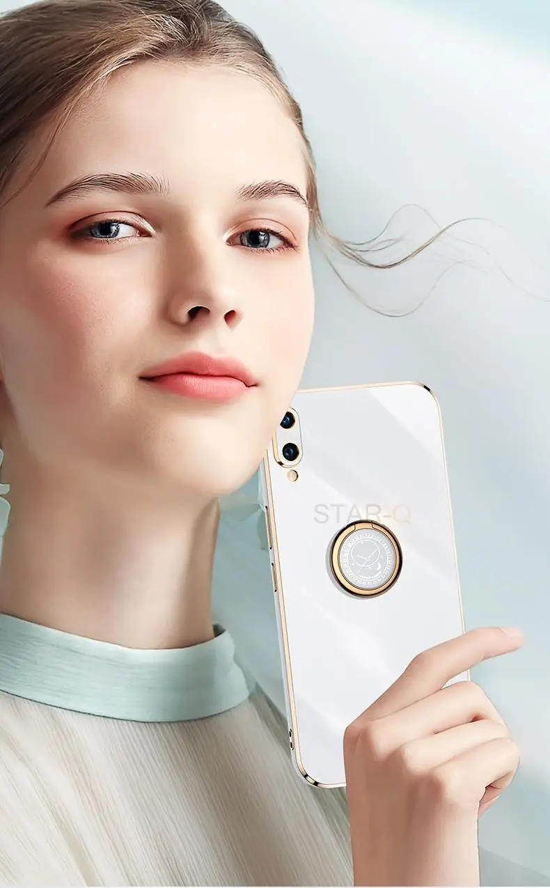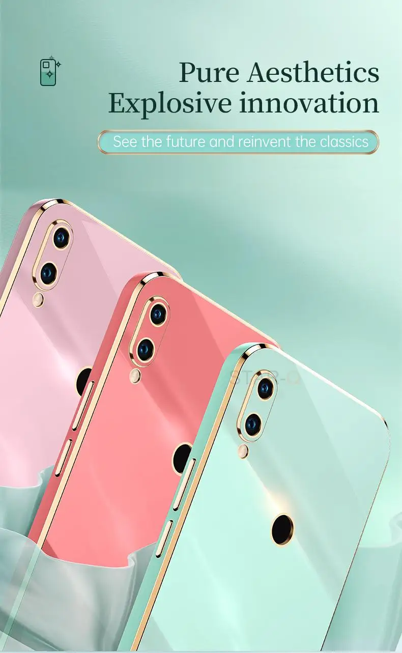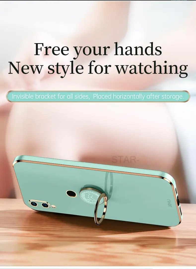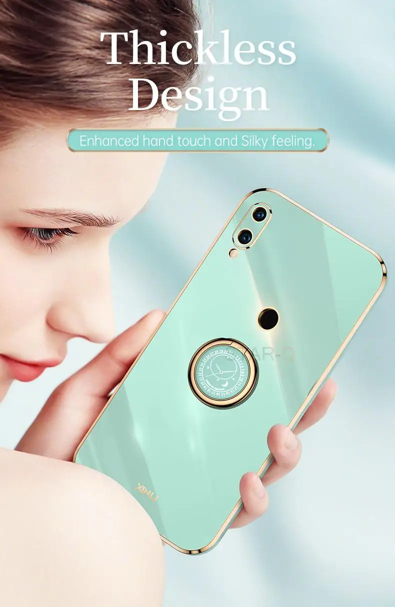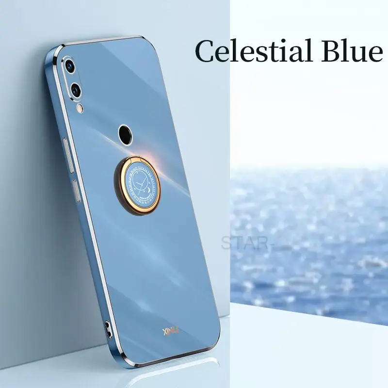 Comprar Funda de teléfono con soporte de anillo chapado para Xiaomi Redmi Note 7 Pro, funda de silicona suave con soporte, parachoques de lujo