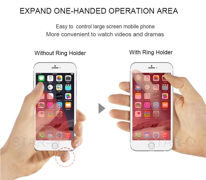 5. Con soporte de anillo, fácil de tomar selfies, fácil de agarrar;