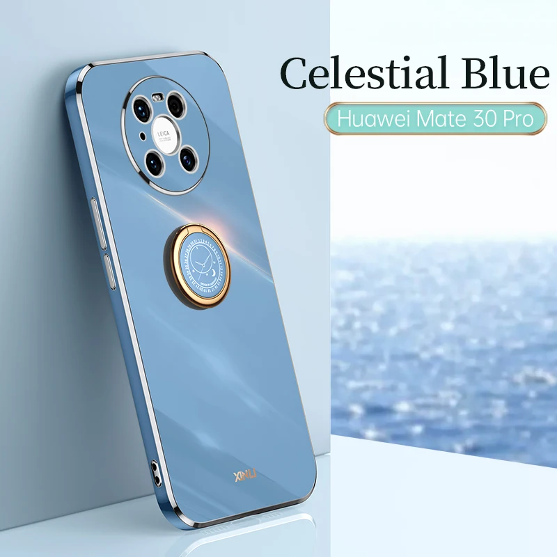 Comprar Funda de teléfono con soporte de anillo de parachoques chapado para Huawei Mate 20 30 40 10 Pro Mate20 Mate30 funda de soporte de silicona suave de lujo