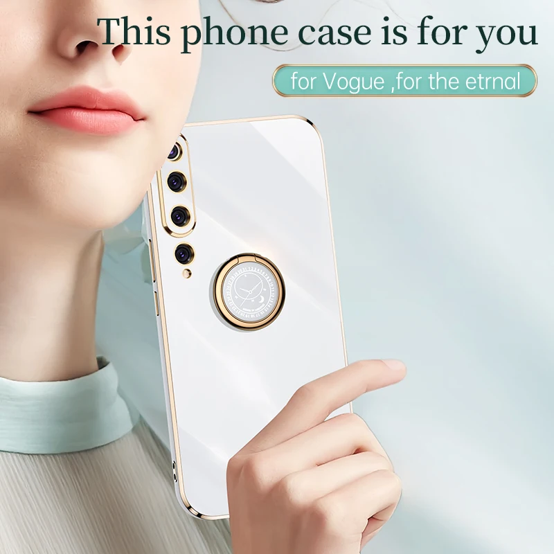 Comprar Funda de teléfono con soporte de anillo de parachoques chapado para Xiaomi Mi 10 Lite 10lite Xiomi Mi10 5g Xiaomi10 funda de soporte de silicona de lujo